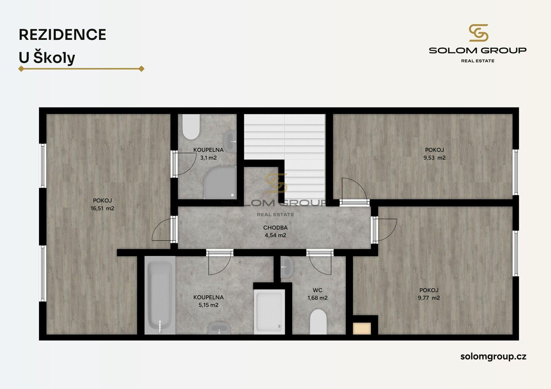 Prodej nového mezonetového bytu 4+kk o velikosti 104 m² + předzahrádka o výměře 27,6 m², který se nachází v 1. NP a 2.NP cihlové novostavby v Rezidenci U Školy, Odolena Voda (Budova A7)