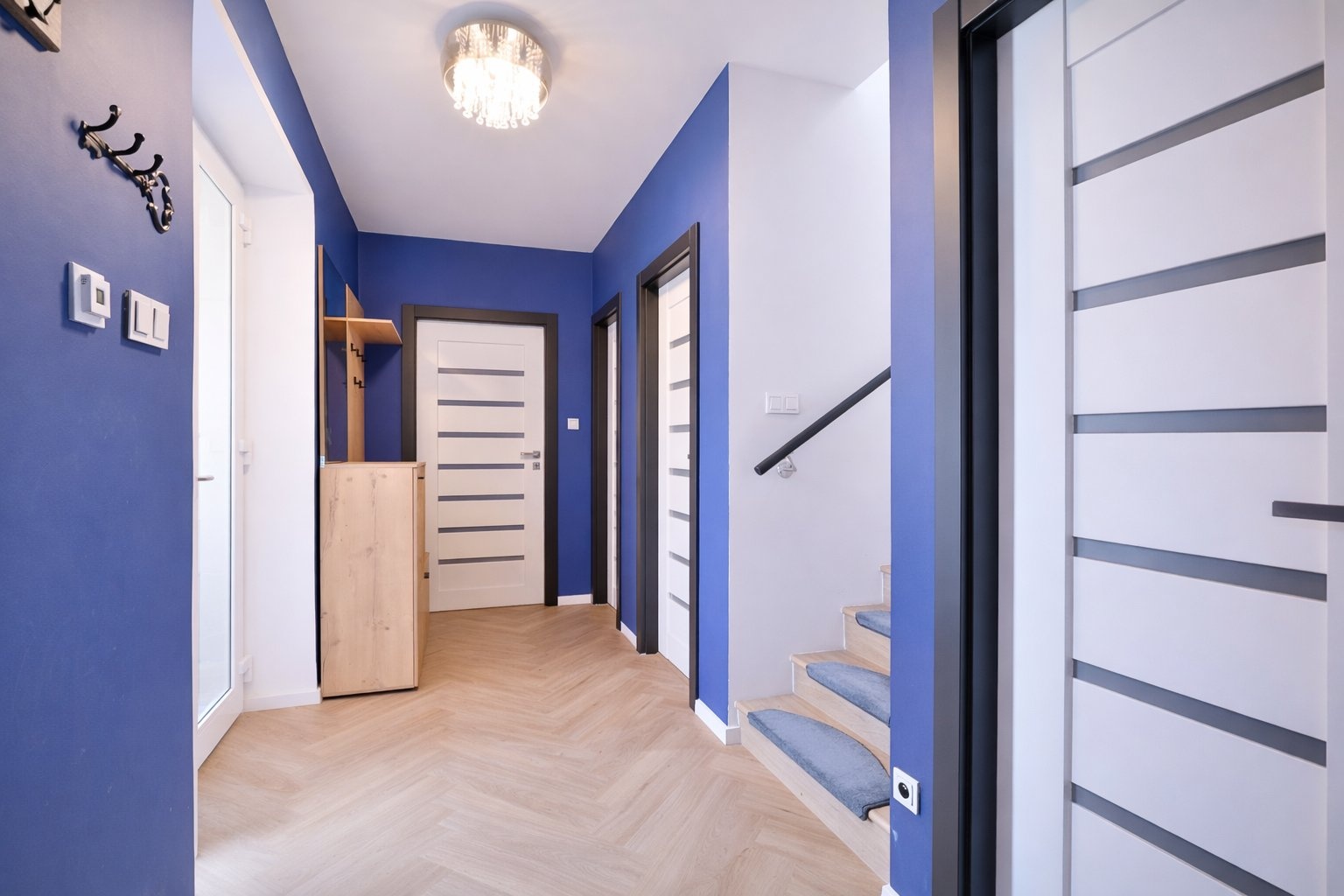 Velkým benefitem domu je také centrální systém řízeného větrání s rekuperací, který zajišťuje pravidelnou výměnu vzduchu, vysoký komfort bydlení a zároveň minimalizuje energetické ztráty.