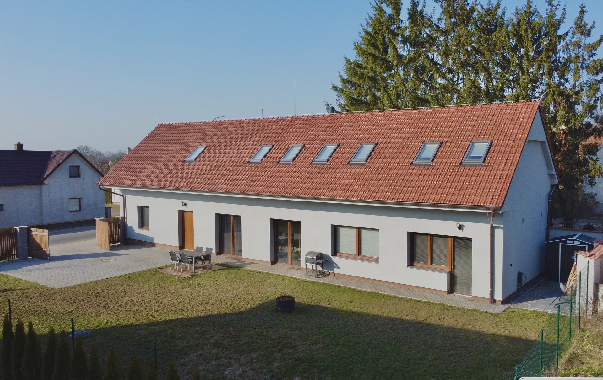 Pozemek o výměře 559 m² poskytuje dostatek prostoru pro zahradu, relaxační zónu i parkování. Zpevněné plochy tvoří přibližně 150 m².