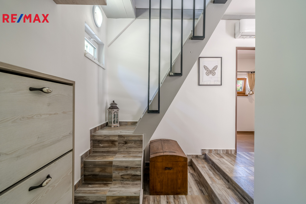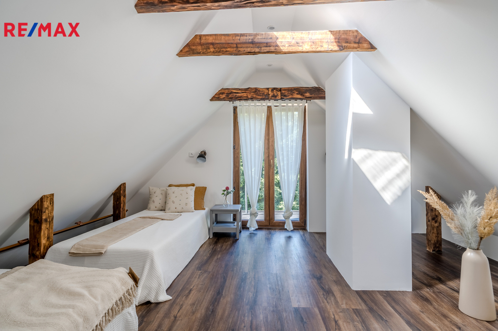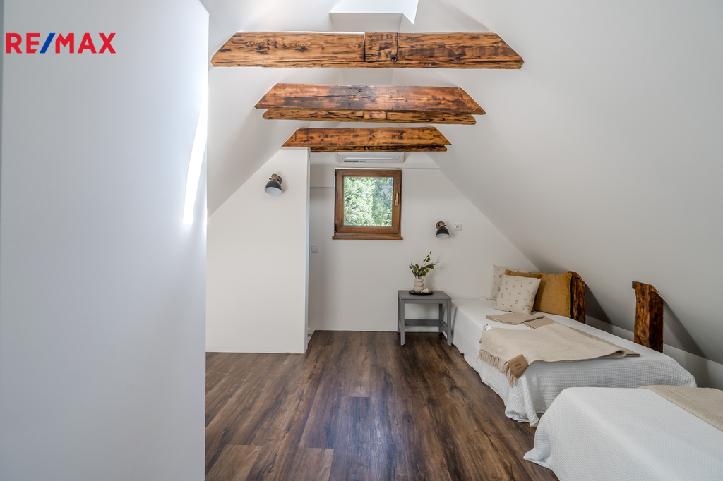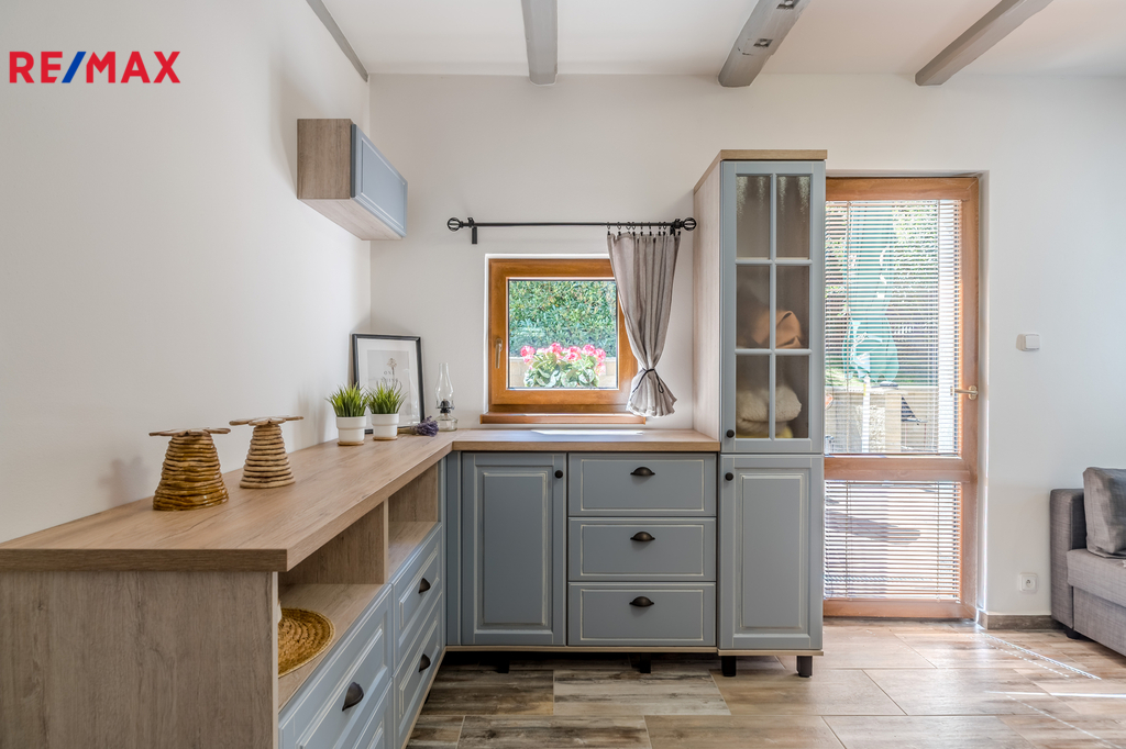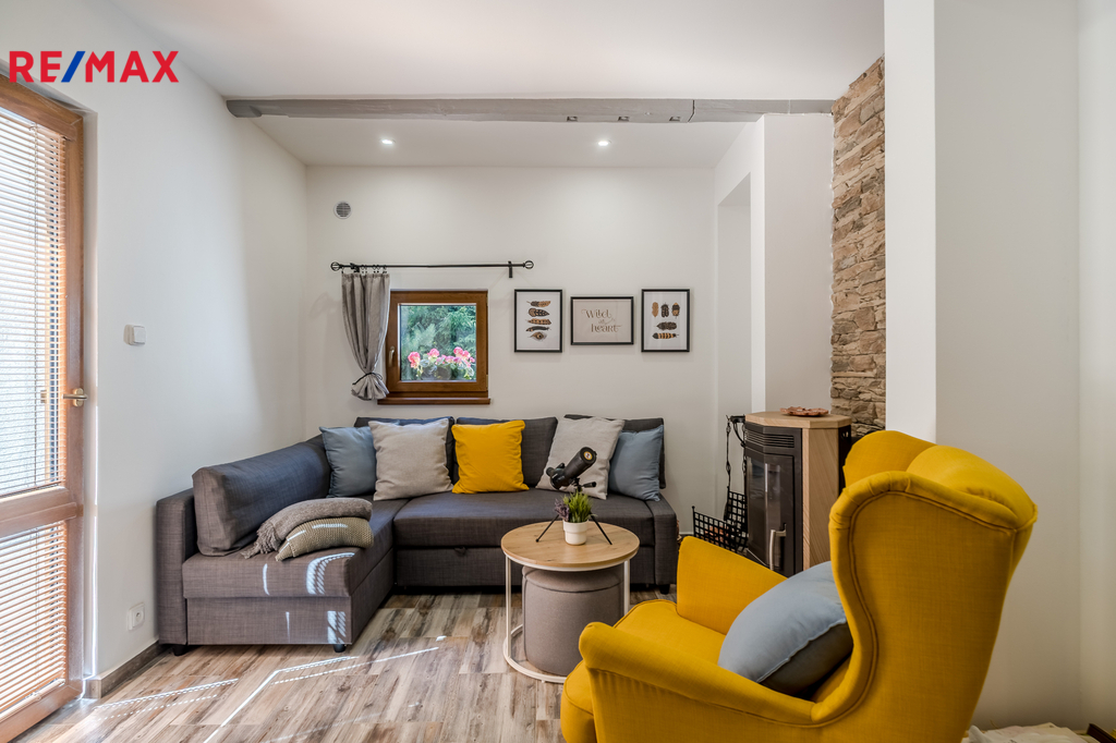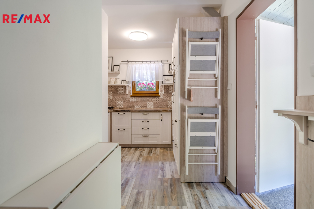 Nemovitost prošla postupnou rekonstrukcí, je v udržovaném stavu a působí velmi příjemným a opečovávaným dojmem. Dispozice 2+1 poskytuje ideální prostor pro jednotlivce, pár, či menší rodinu. V přízemí se nachází obývací pokoj s krbovými kamny, které v zimních měsících dodávají interiéru nezaměnitelnou atmosféru. Z obývacího pokoje je vstup do koupelny s toaletou a sprchovým koutem. Samostatná kuchyň je vybavena mimo jiné mikrovlnnou troubou a nabízí dostatek prostoru pro pohodlné vaření. Po schodech se dostanete do podkroví, kde je ložnice se vstupem na balkon. Pro rodinu je možné prostor v přízemí doplnit rozkládací pohovkou nebo dalším spaním v podkroví.