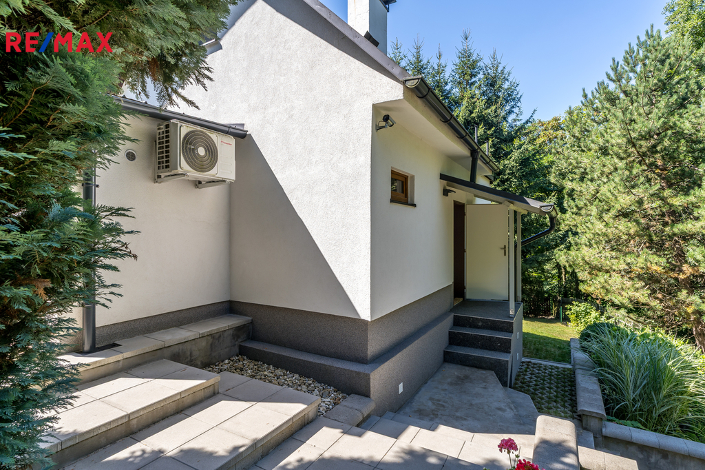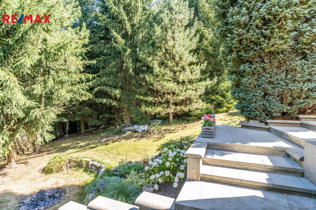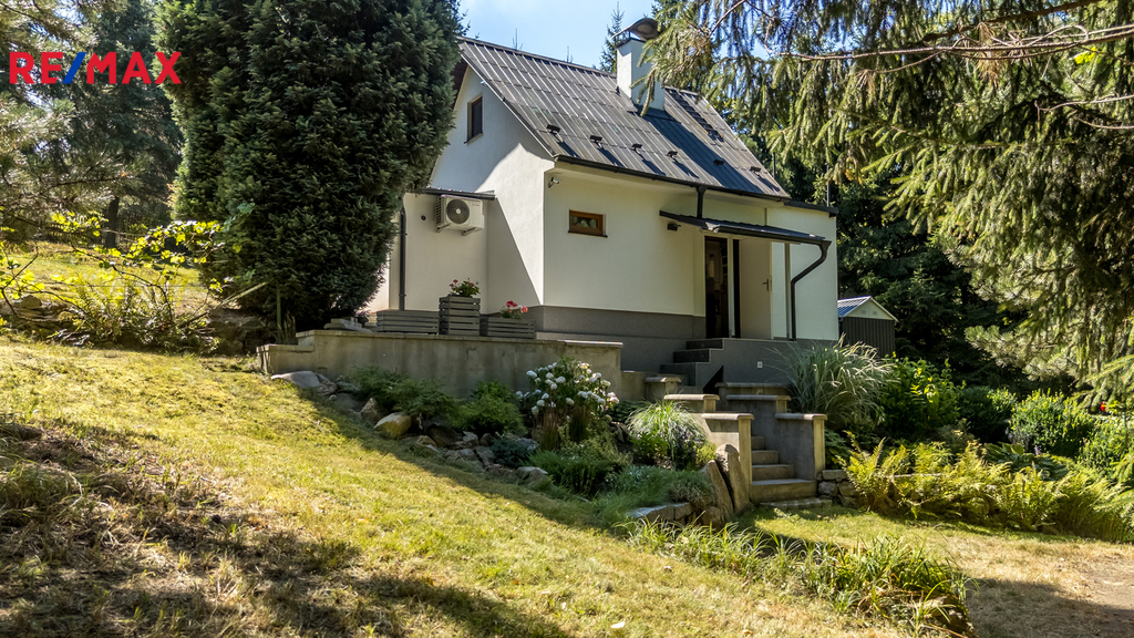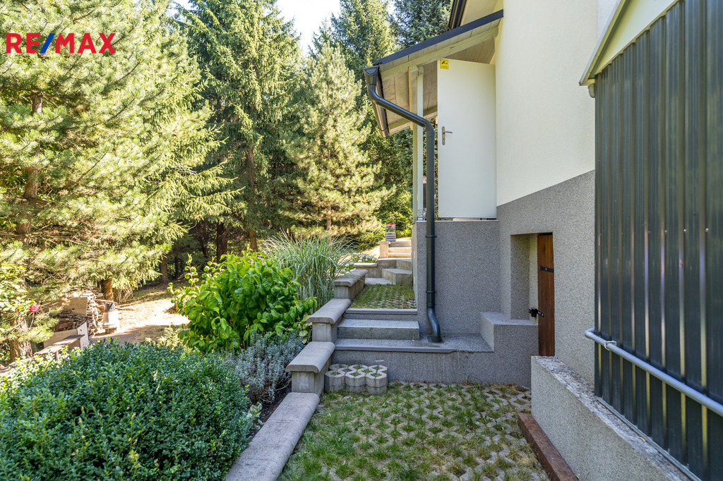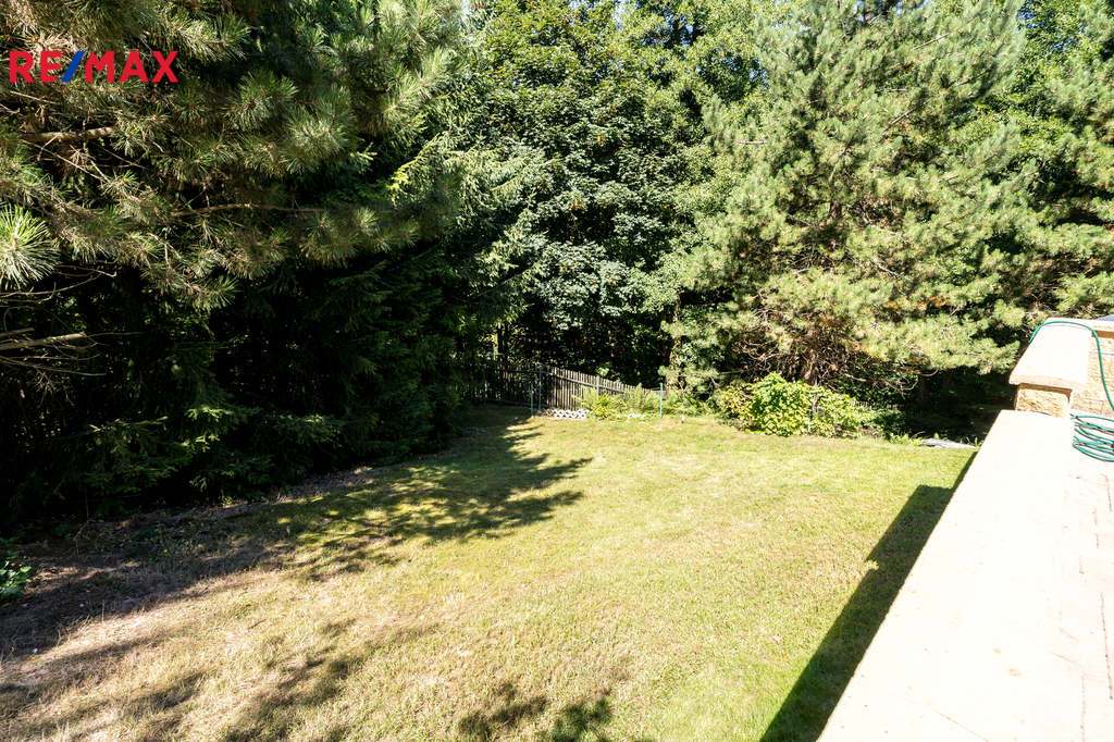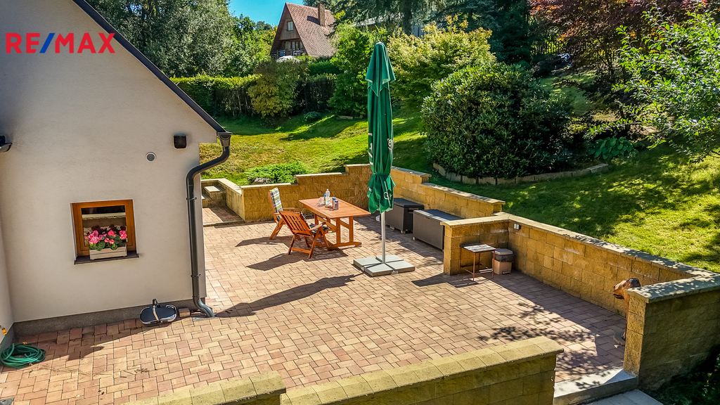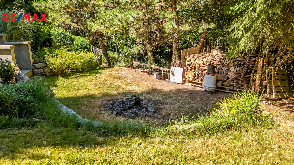 K objektu patří i prostorná terasa - ideální pro posezení, grilování nebo opalování. Na udržovaném pozemku o rozloze 1 647 m² se nachází vzrostlé jehličnany, ovocné stromy (jabloň, třešeň, švestka), keře malin a borůvek, vinná réva. Navíc zde najdete zahradní domek na uložení nářadí. Celý pozemek působí jako malá oáza klidu a je perfektním místem k relaxaci i aktivnímu odpočinku.