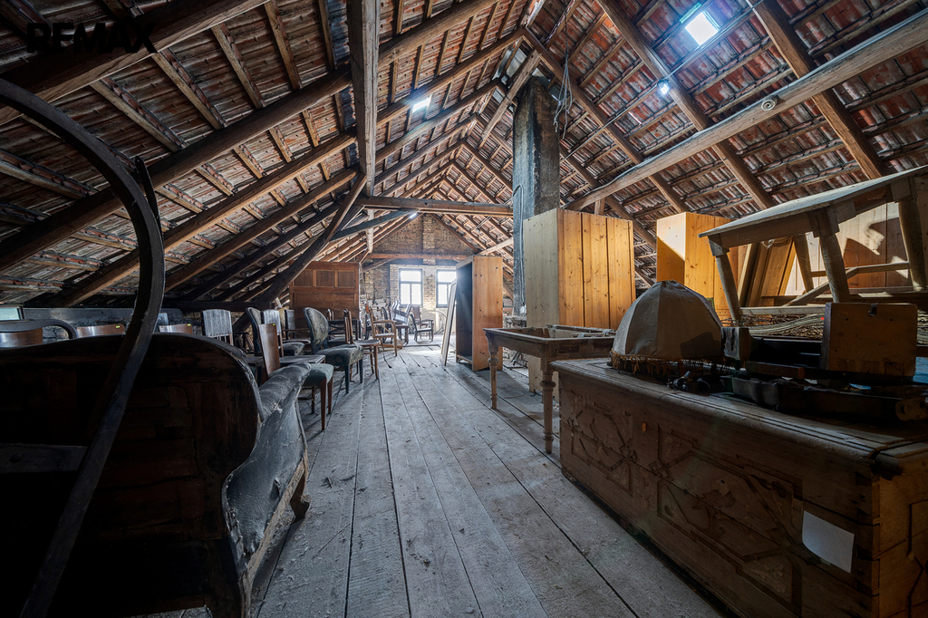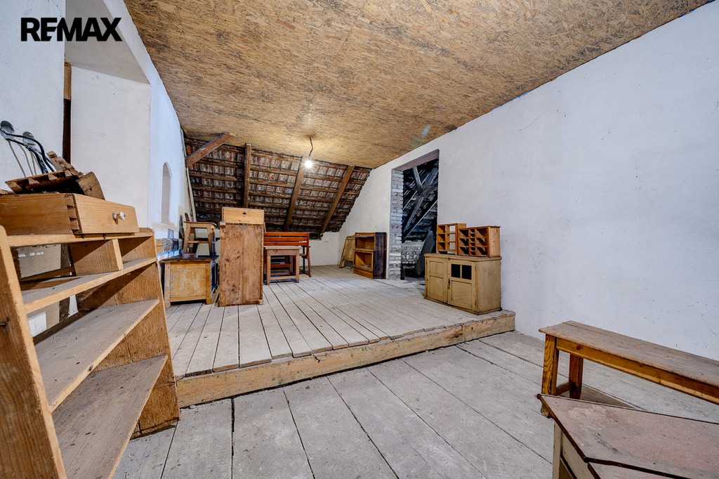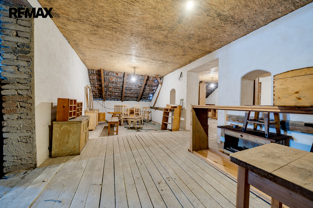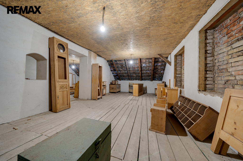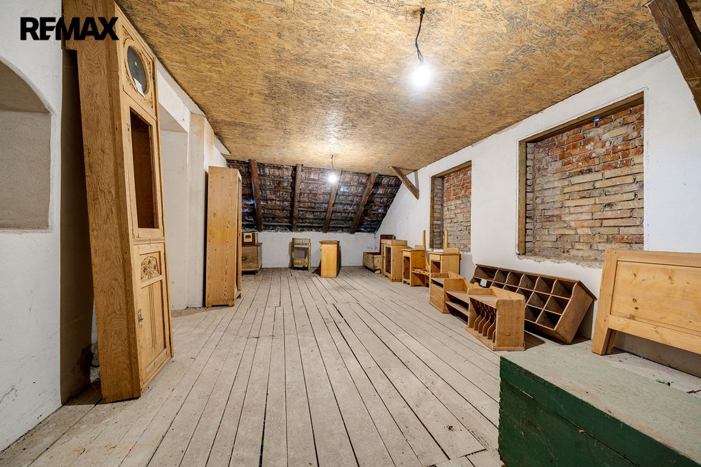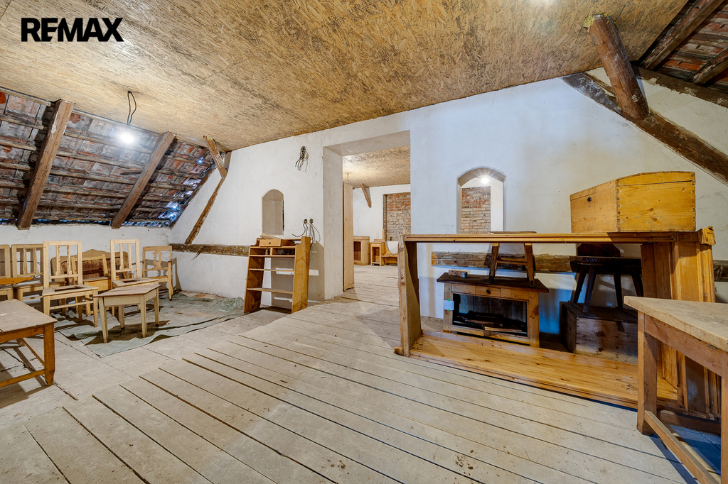 V přízemí nyní funguje prodejna starožitností, podkroví slouží jako sklad.