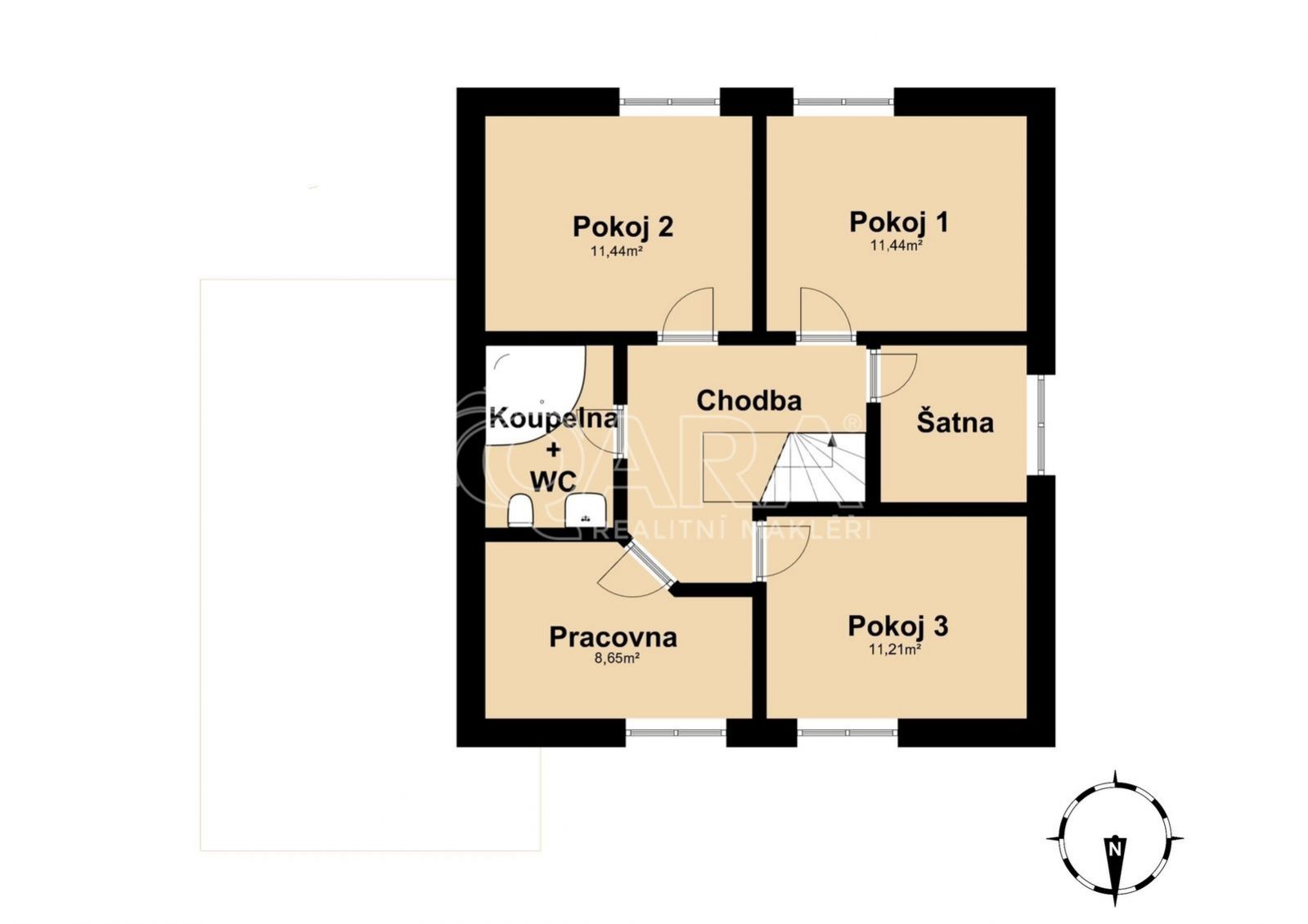 Patro (2. NP): Klidová zóna se 3 samostatnými ložnicemi, šatnou a kanceláří. K dispozici je také půdní prostor k uskladnění sezónních věcí.