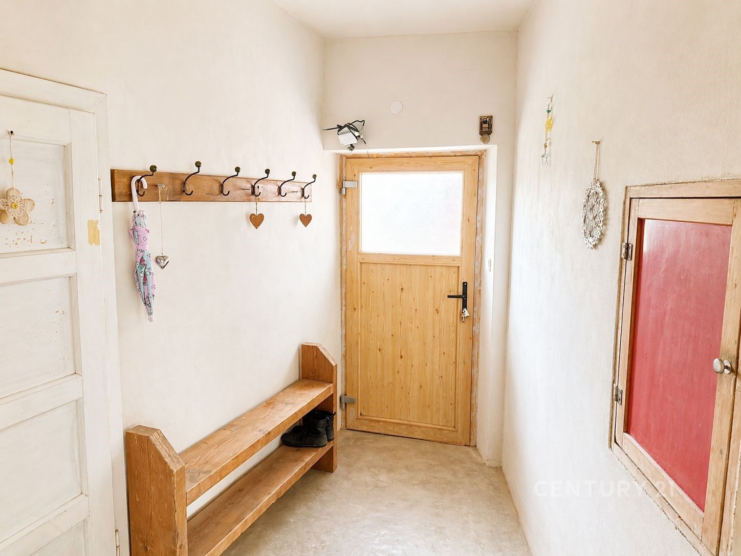 Dominantou domu je prostorná společenská místnost s kamny hned u vstupu, která nabízí příjemnou atmosféru pro rodinné chvíle, posezení s přáteli nebo odpočinek nejen v zimních měsících. Na tuto část navazuje chodba, ze které se vstupuje do jednotlivých místností – kuchyně, dětského pokoje a koupelny. Dům dále disponuje horním patrem s dalšími obytnými pokoji, které poskytují dostatek prostoru pro větší rodinu, pracovnu či další hosty.