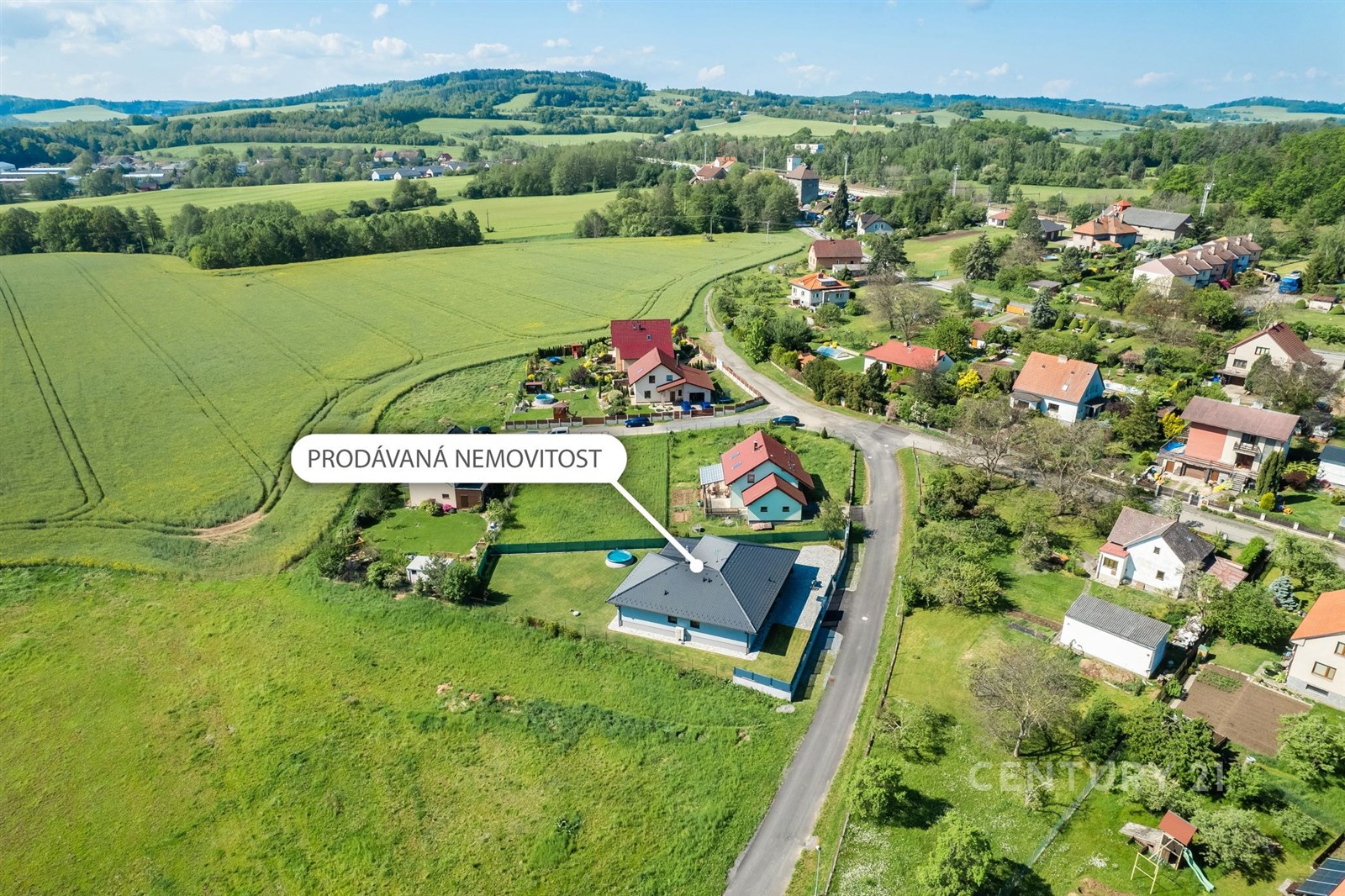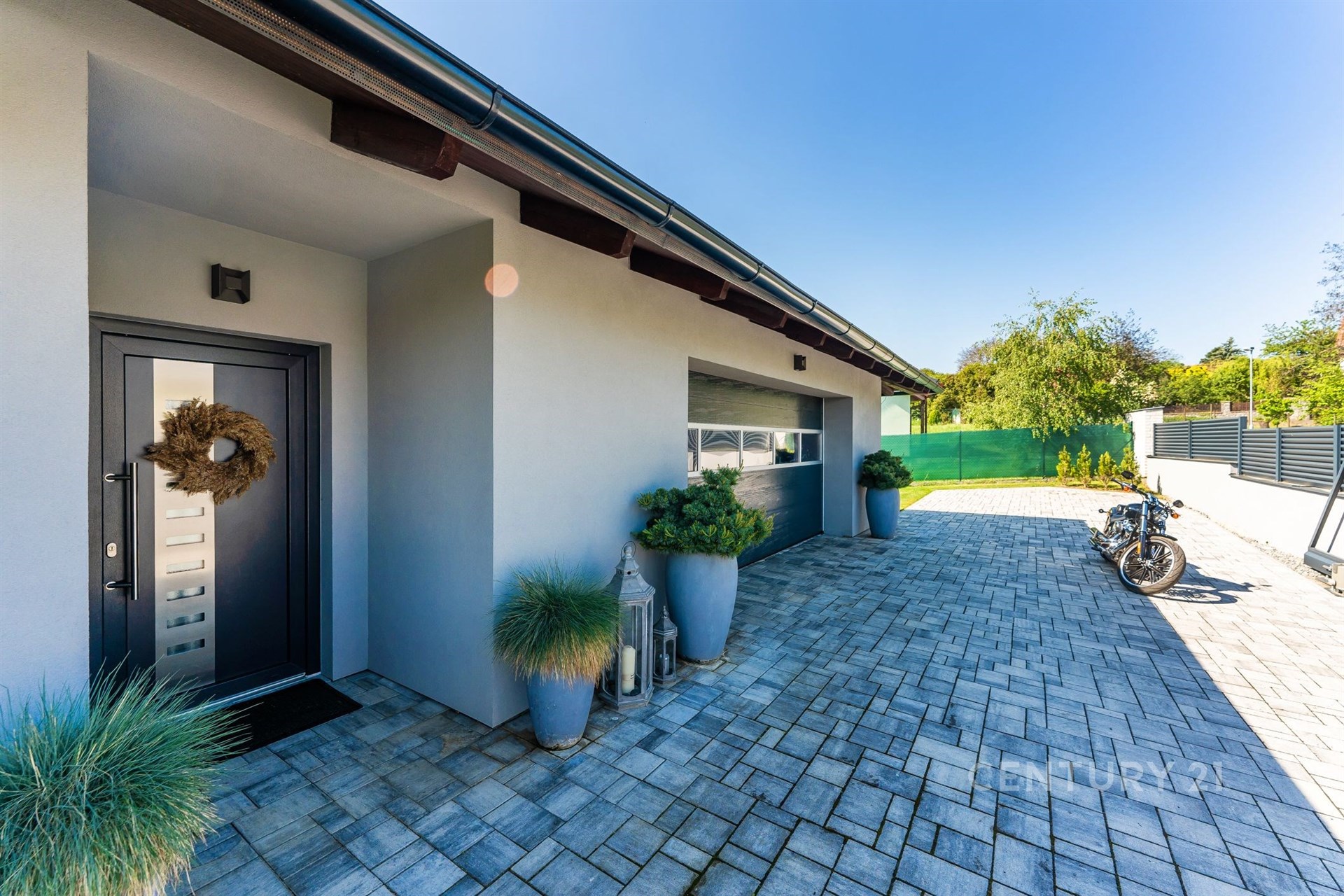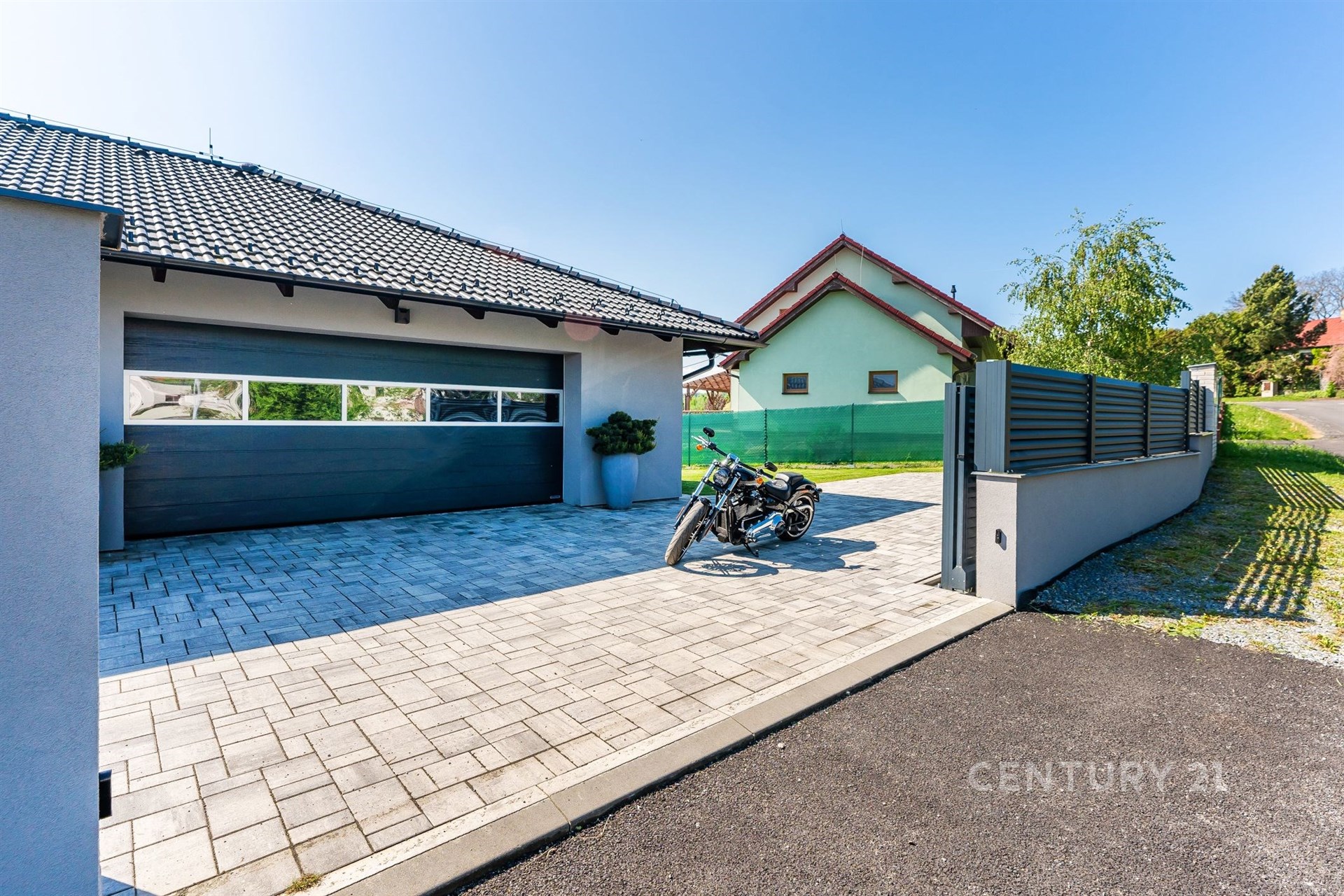 Moderní rodinný dům s rozlehlou pergolou a dvojgaráží, Olbramovice