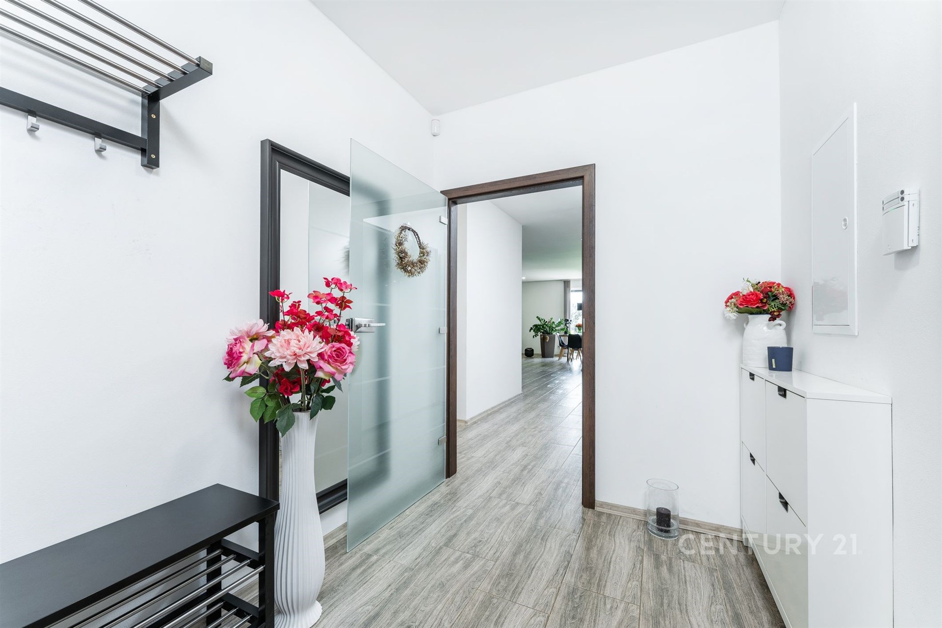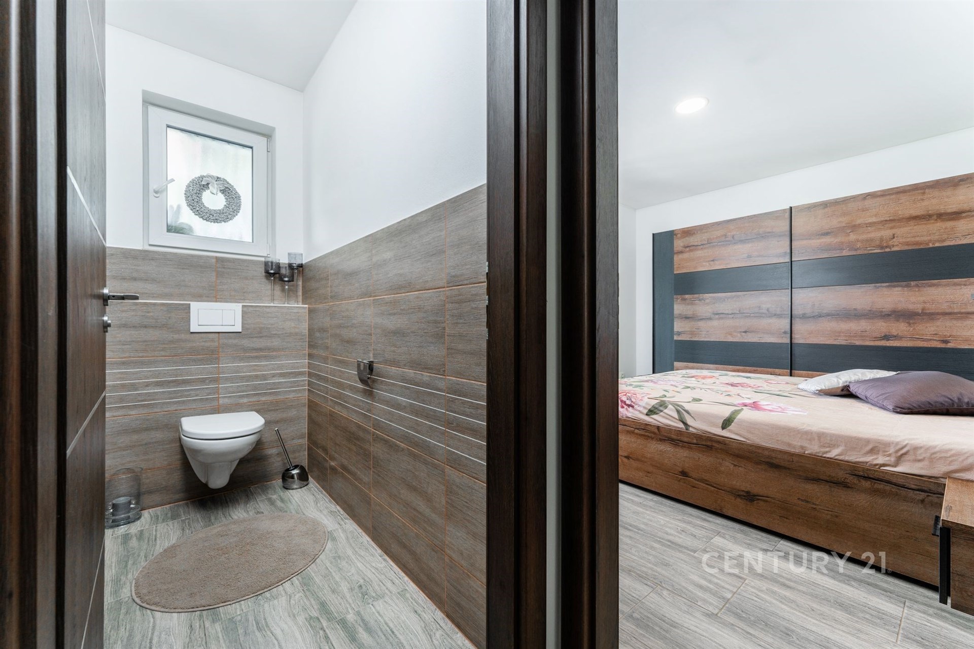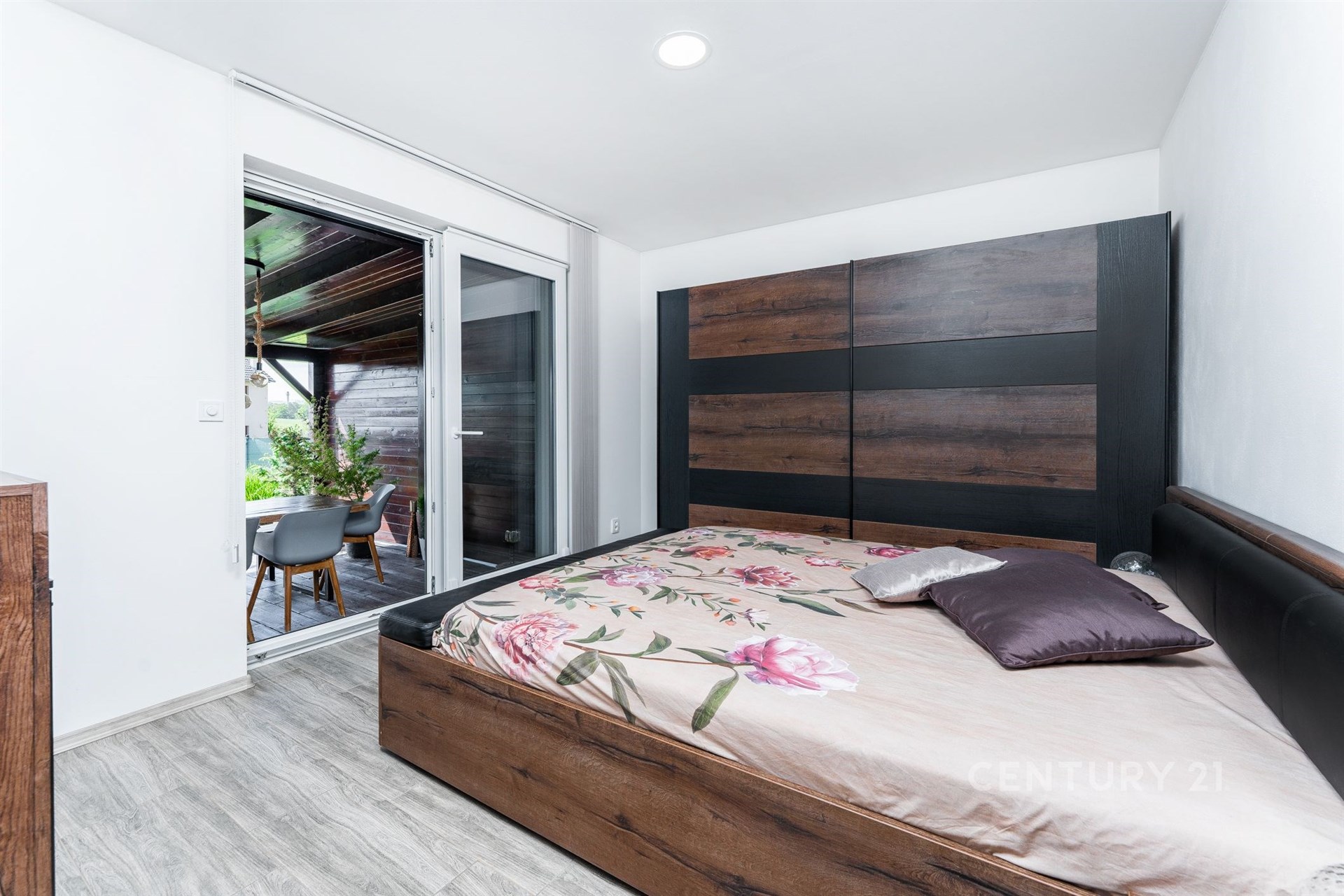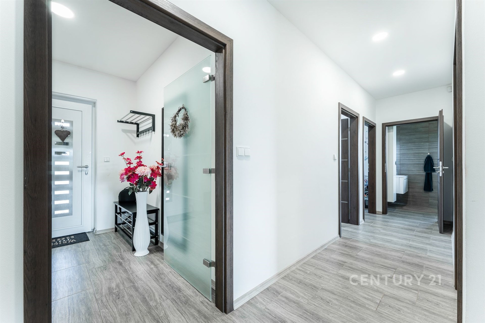 Prostorný dům disponuje třemi útulnými pokoji. Designová kuchyň s vestavěnými spotřebiči je spojena se vzdušným obývacím pokojem. Na ten navazuje velkorysá krytá terasa (47 m2) poskytující dokonalé zázemí pro trávení společného času s rodinou, přáteli či o samotě při relaxu s výhledem do půvabné krajiny. Dům je plně vybaven vkusným nábytkem, což usnadní novým majitelům přechod do nového domova.
