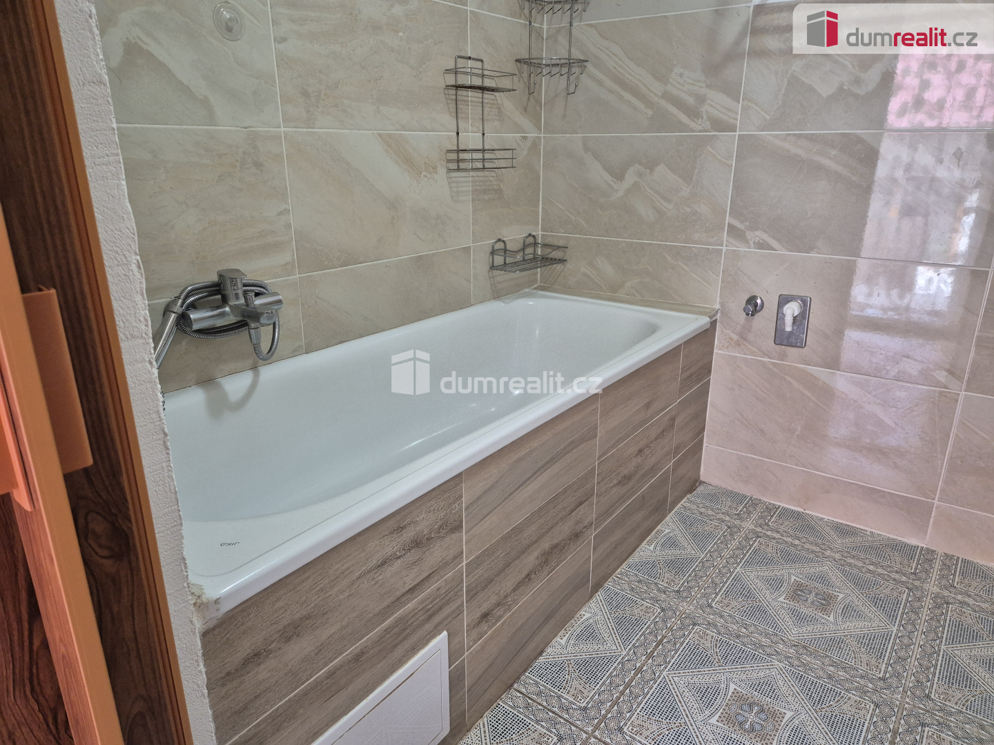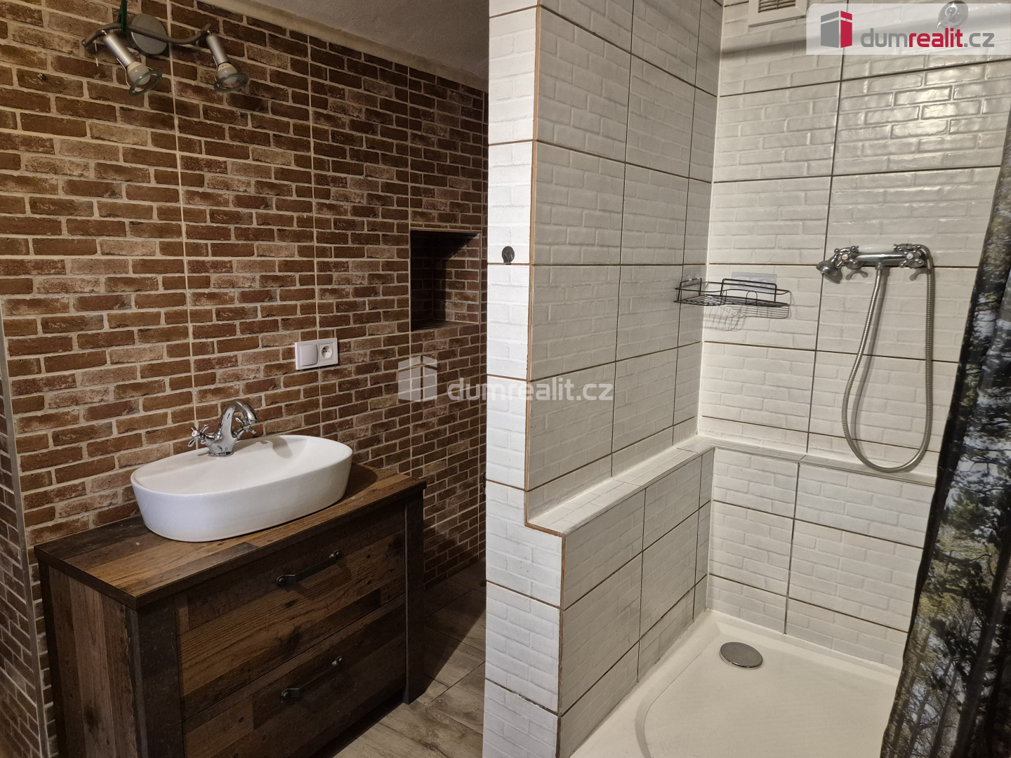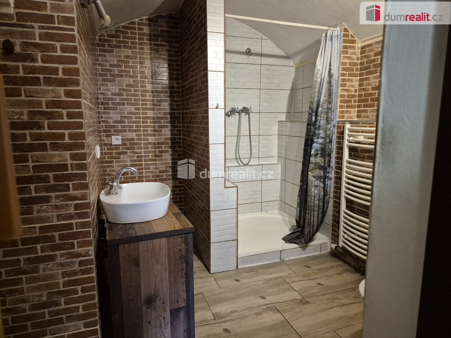 V přízemí nalezneme byt 2+1 s koupelnou se sprchovým koutem, umyvadlem a WC, a kotelnu s moderním kotlem na tuhá paliva. Po dřevěném schodišti se pak dostaneme do bytu o dispozici 3+1+úložný prostor s koupelnou s vanou a umyvadlem a samostatným WC, o cca 90 m² podlahové plochy.