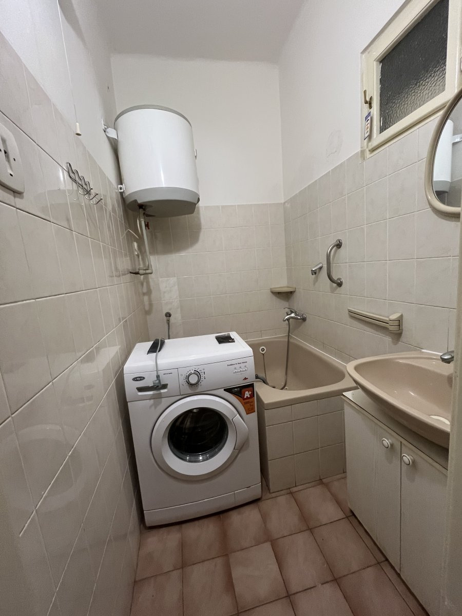 Koupelna je vybavena vanou, umyvadlem, bojlerem a zrcadlem, toaleta je samostatná. V předsíni se nachází botník.