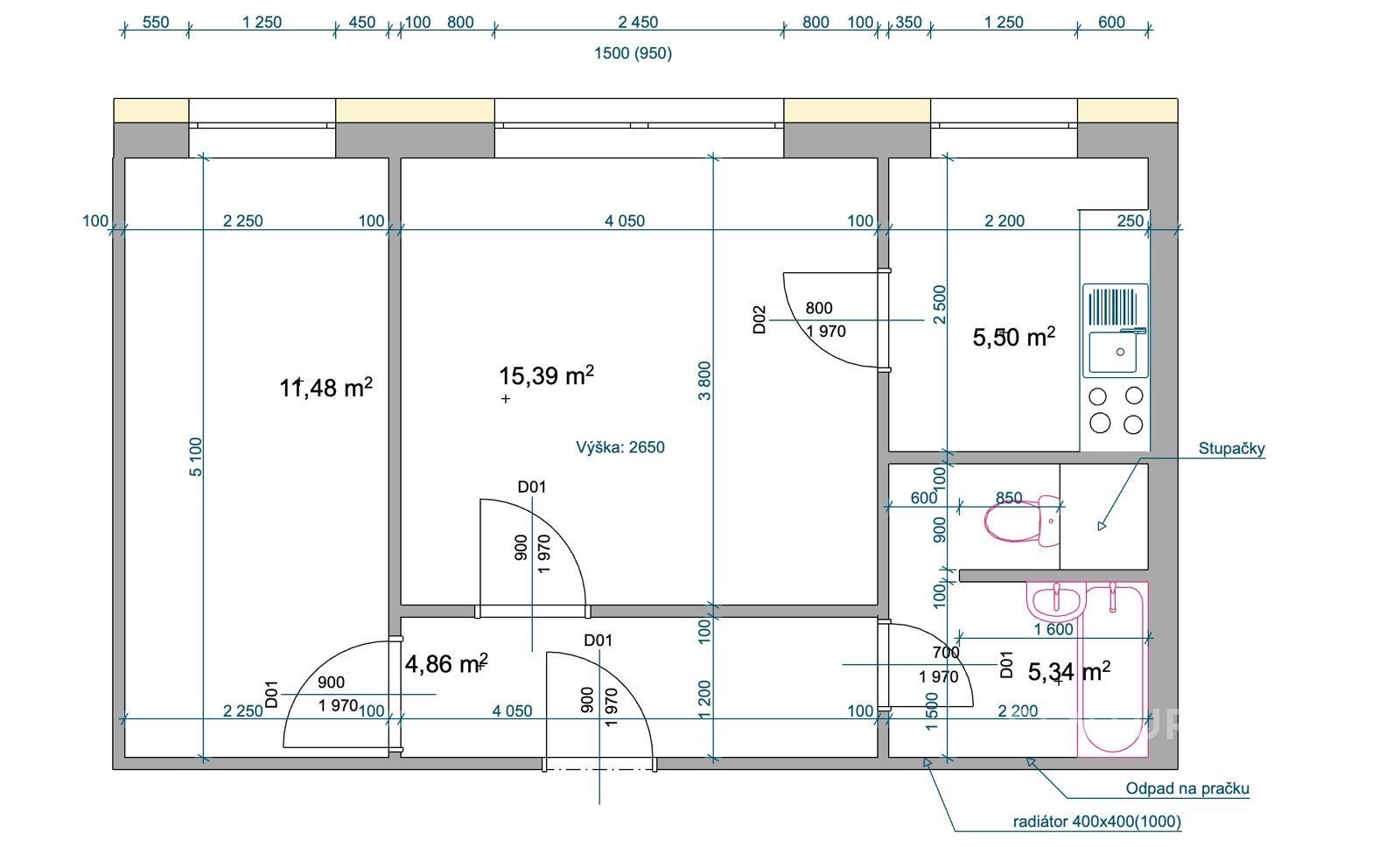 | Dispozice/podlahová plocha: | 2+1/45 m² |