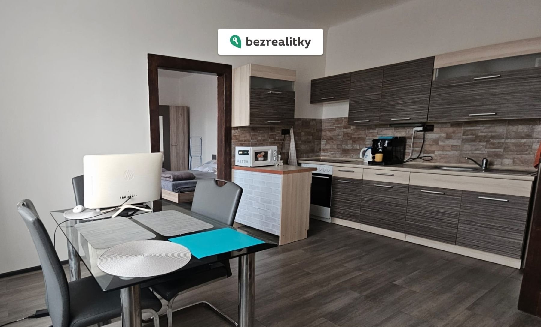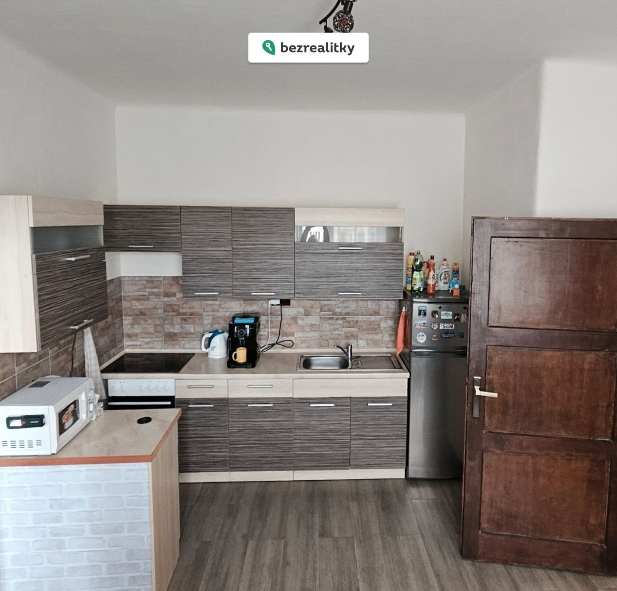 Byt se prodává i s vybavením: kuchyňská linka, indukční varná deska, lednice, stůl + židle, postel, skříň, elektrické konvektory.