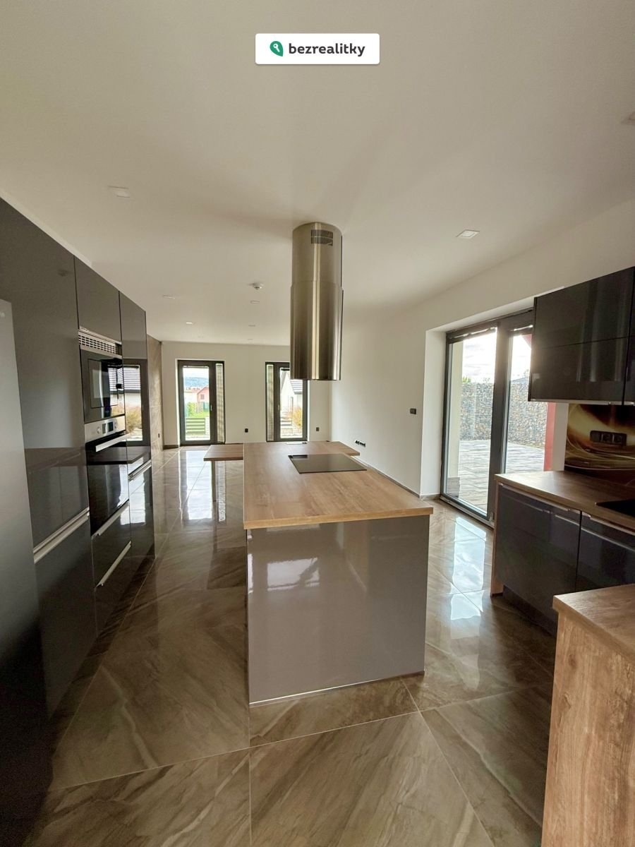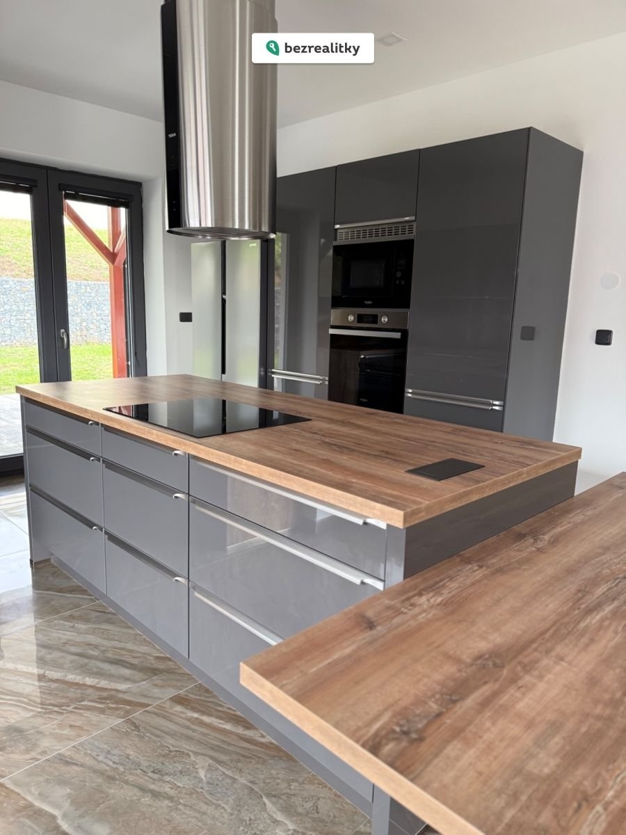 O vytápění se stará moderní tepelné čerpadlo napojené na teplovodní podlahové topení, které zajišťuje rovnoměrné rozložení tepla v celém domě včetně garáže a nízké provozní náklady. Nemovitost je navíc chráněna zabezpečovacím systémem s alarmem, což zvyšuje pocit bezpečí. Součástí standardu je i plně vybavená kuchyňská linka, takže nový majitel může okamžitě využívat všechny funkce domu bez nutnosti dalších investic.