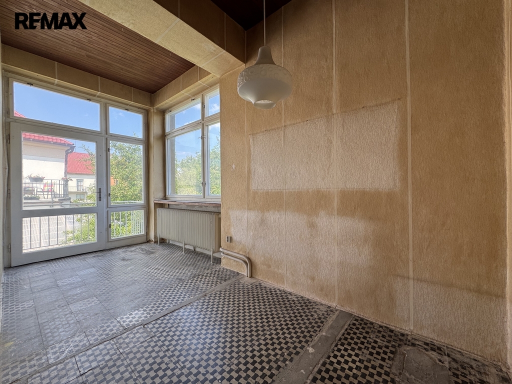 Představujeme Vám tuto nádhernou vilu postavenou pravděpodobně v roce 1927 s dobrou pěší dostupností do centra města Olomouce a přitom na klidném místě. Do vily se vstupuje bočním vchodem, kudy vstupujete do bytu s dispozicí 6+1 a celkovou přibližnou užitnou plochou 163 m². V 1.PP se nachází sklepy s oddělenými prostory (22 m²; 10 m²; 6 m²). V 1.NP naleznete obývací místnost (29 m²), jídelnu (14 m²), kuchyni (9,6 m²), koupelnu (3,66 m²), spíž (2,6 m²), vstupní síň (7 m²) a verandu (4,4 m²). V 2.NP jsou 3 oddělené místnosti (25 m², 21 m², 12 m²), koupelna 4 m², průchozí komora (5 m²) směrem na WC (1,7 m²). V podkroví (3.NP) je už pouze jedna místnost (24,6 m²) a oddělené půdní prostory (30 m² a 6,5 m²). Všechny výměry jsou orientační bez zaměření odborného technika. Dům je v zastaralém stavu s nutnou budoucí modernizací (vyjma střechy, stáří cca 15 let).