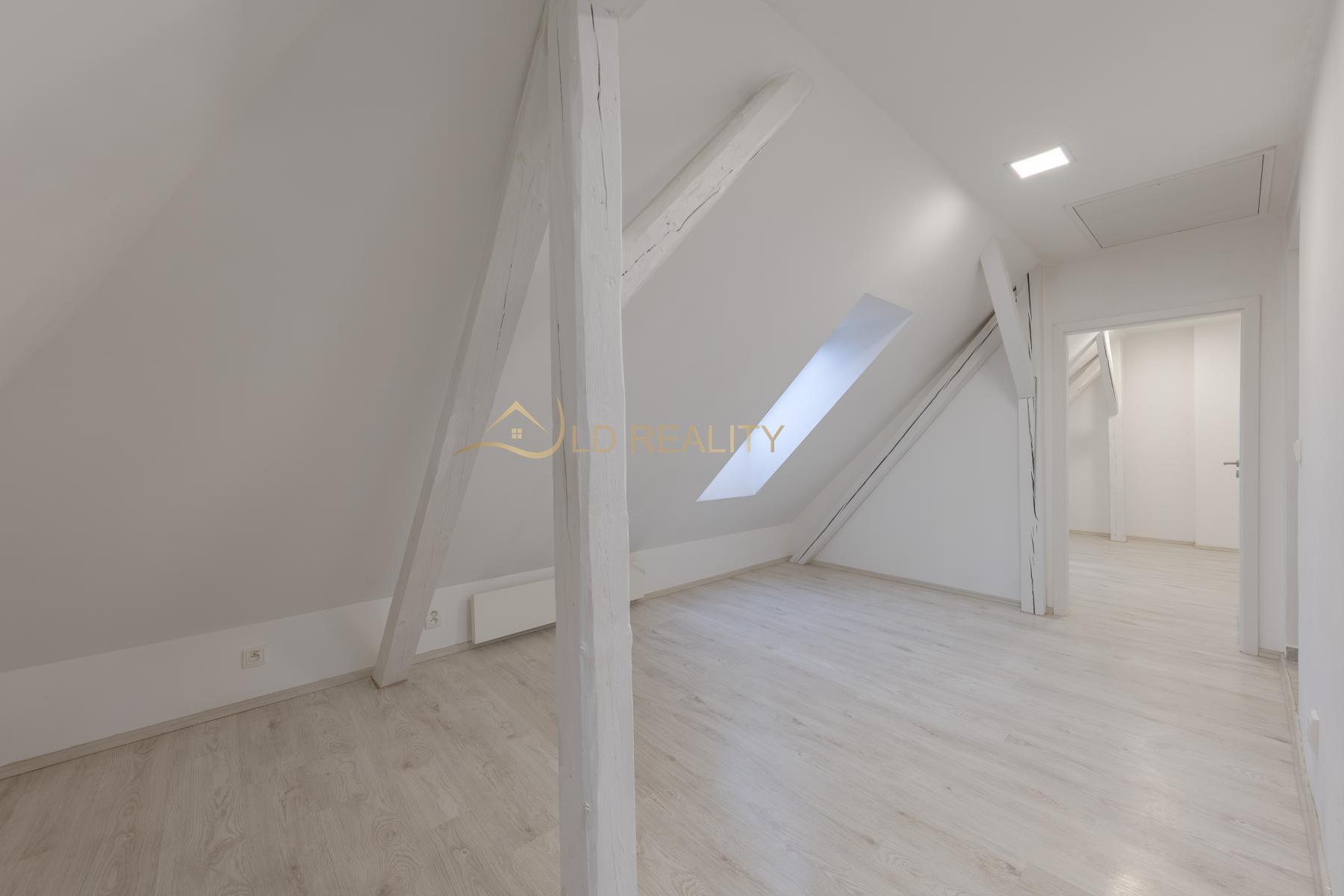 Byt byl vybudován jako půdní vestavba v roce 2018 a nabízí moderní a praktické řešení prostoru pro pohodlné bydlení. Interiér tvoří obývací pokoj s kuchyňským koutem, samostatná ložnice a koupelna se sprchovým koutem a toaletou.