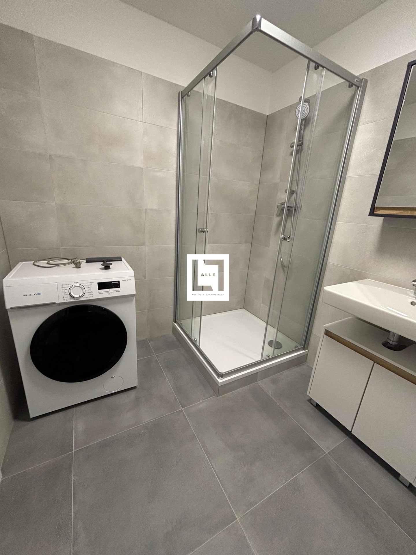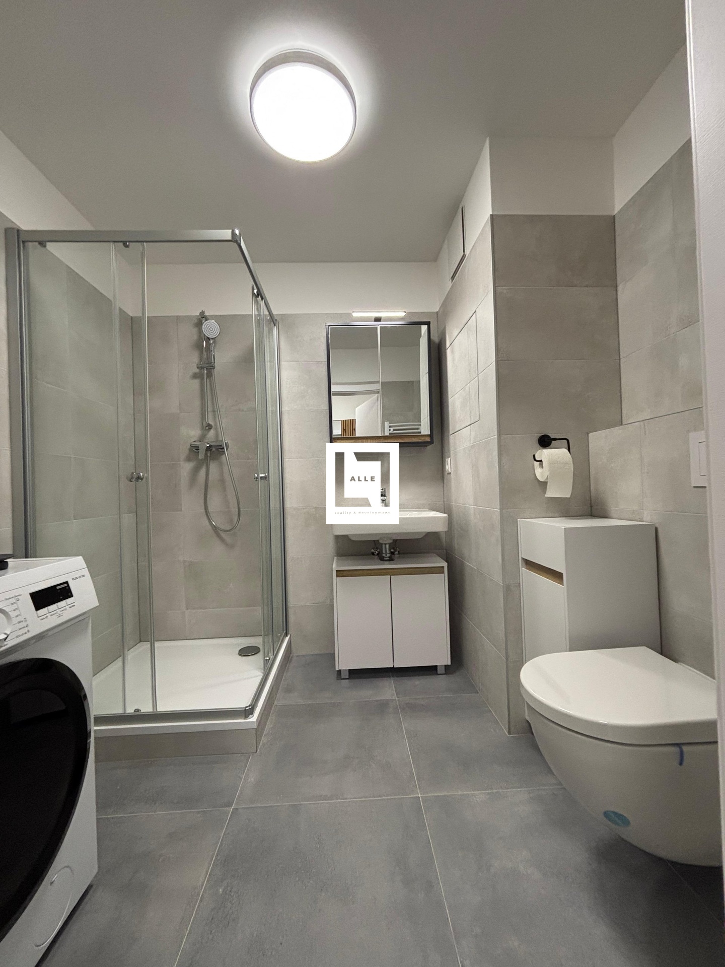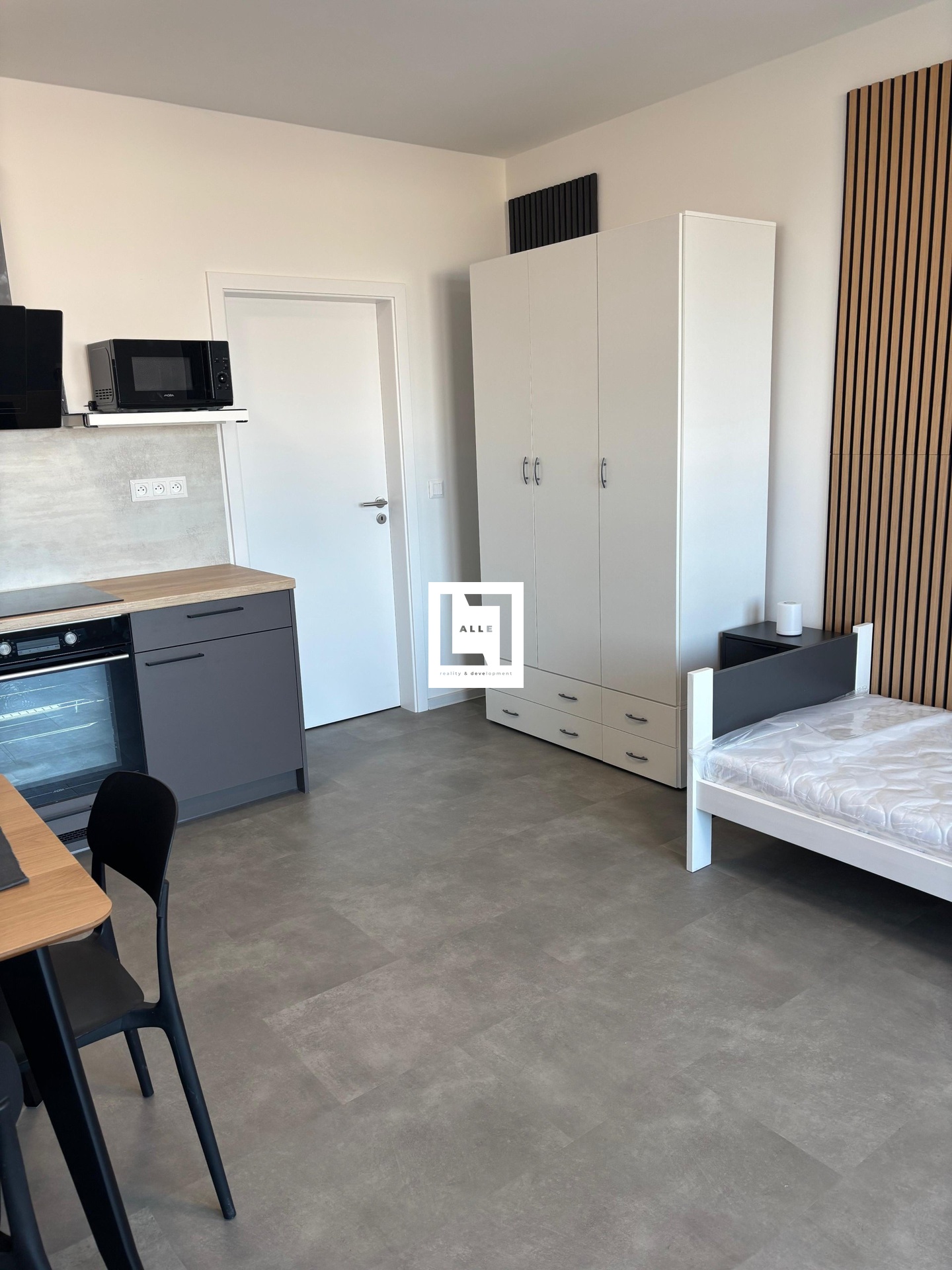 Kompletně zařízený byt č. 2406 o dispozici 1+kk má výměru 31 m2 a balkón 6 m2. Přes chodbu s botníkem vstupujete do kompletně zařízeného pokoje. Kuchyňská linka je vybavena lednicí s mrazničkou, troubou na pečení, varnou indukční deskou, mikrovlnou troubou a digestoří. Dále v pokoji najdete jídelní stůl, dvě židle, postel s novou matrací, psací stůl, pracovní židli a prostornou skříň. Byt je nádherně prosluněný. Velká okna, jsou osazena žaluziemi. V celém bytě jsou kvalitní vinylové podlahy. V koupelně se nachází sprchový kout, toaleta, umyvadlo, pračka a vestavěný nábytek. K bytu náleží komora na patře. V případě zájmu je možné pronajmout i vyhrazené parkovací stání v garáži přímo pod bytem za poplatek 1 500,- Kč/měsíc. Byt je úplně nový, těsně po kolaudaci a připravený pro nového nájemníka. K ceně nájmu se platí zálohy za energie a služby (včetně elektřiny) ve výši 2 500,-/měsíc.