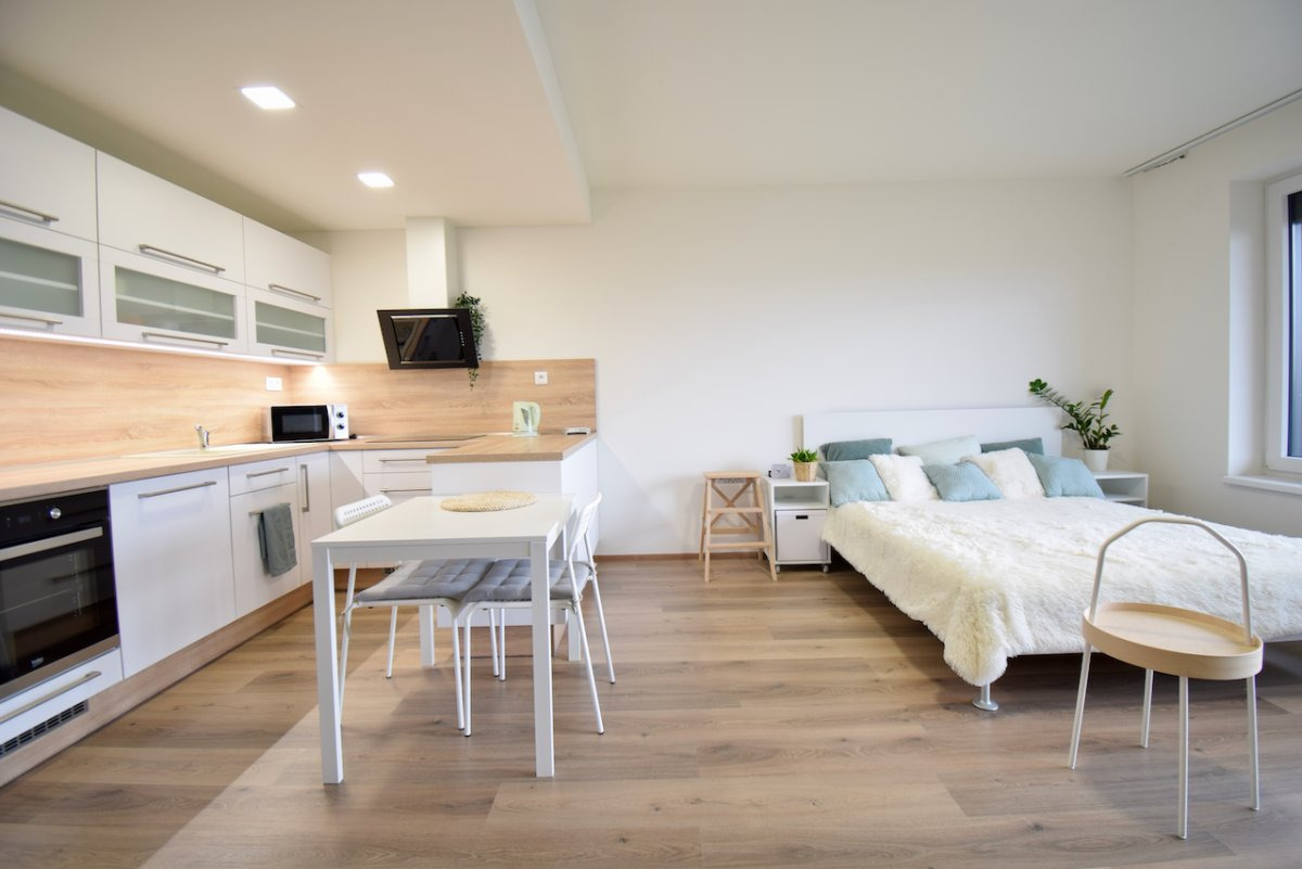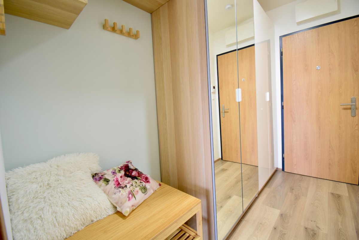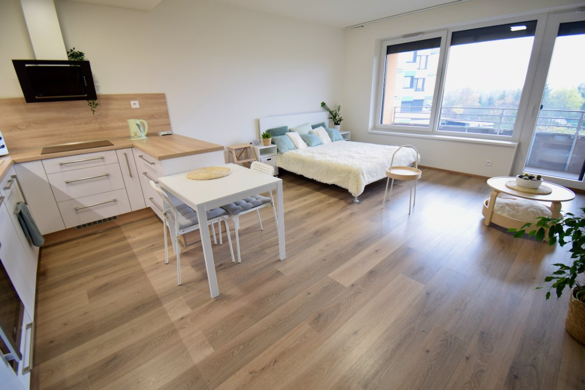 K dlouhodobému podnájmu nabízíme krásný byt o dispozici 1+kk na ulici Slavonínská. Byt o celkové ploše 41 m2 se nachází ve 4. patře cihlové novostavby. K bytu náleží i prostorný balkón a garážové stání.