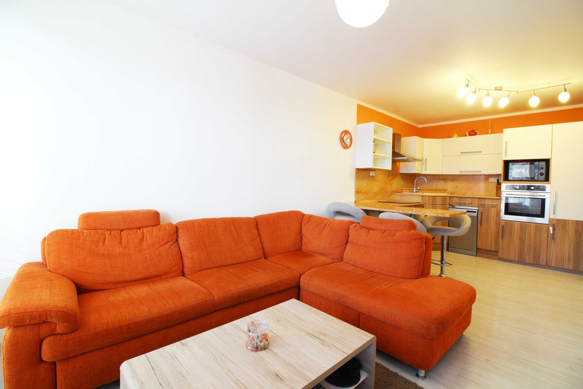 Byt se nabízí částečně vybavený. Nadstandardní kuchyňská linka disponuje lednicí, myčkou, sklokeramickou deskou, elektrickou troubou a digestoří. V kuchyni je také jídelní stůl s barovými židlemi. Obývací část je stylově zařízená rozkládací sedací soupravou, obývací stěnou, televizní a konferenčním stolkem. Součástí ložnice je postel, noční stolky a praktická šatní skříň. V nové koupelně je vana, umyvadlo a pračka. Toaleta je oddělená.