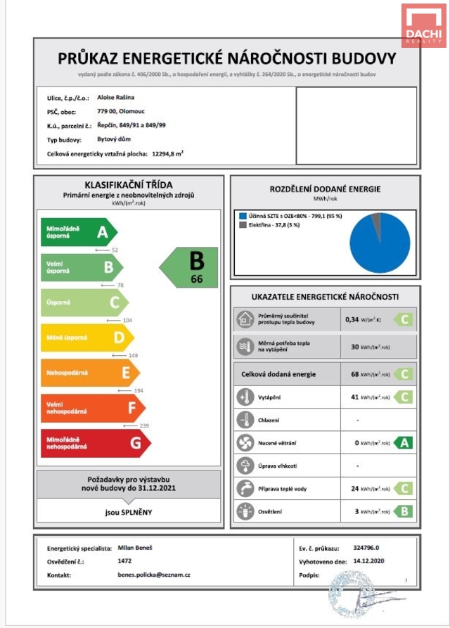 - Energetická náročnost budovy: B - Velmi úsporná
