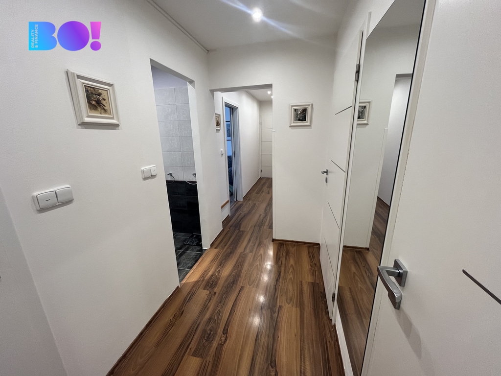 Byt se nachází v 5. patře a prošel kompletní rekonstrukcí, díky které nabízí komfortní a moderní bydlení. Dispozice zahrnuje světlý obývací pokoj, samostatnou kuchyň, ložnice s pracovnou, pokoj, koupelnu s vanou, samostatné WC, prostornou chodbu a praktickou komoru. Velkou výhodou je také prostorný balkón, ideální pro odpočinek.