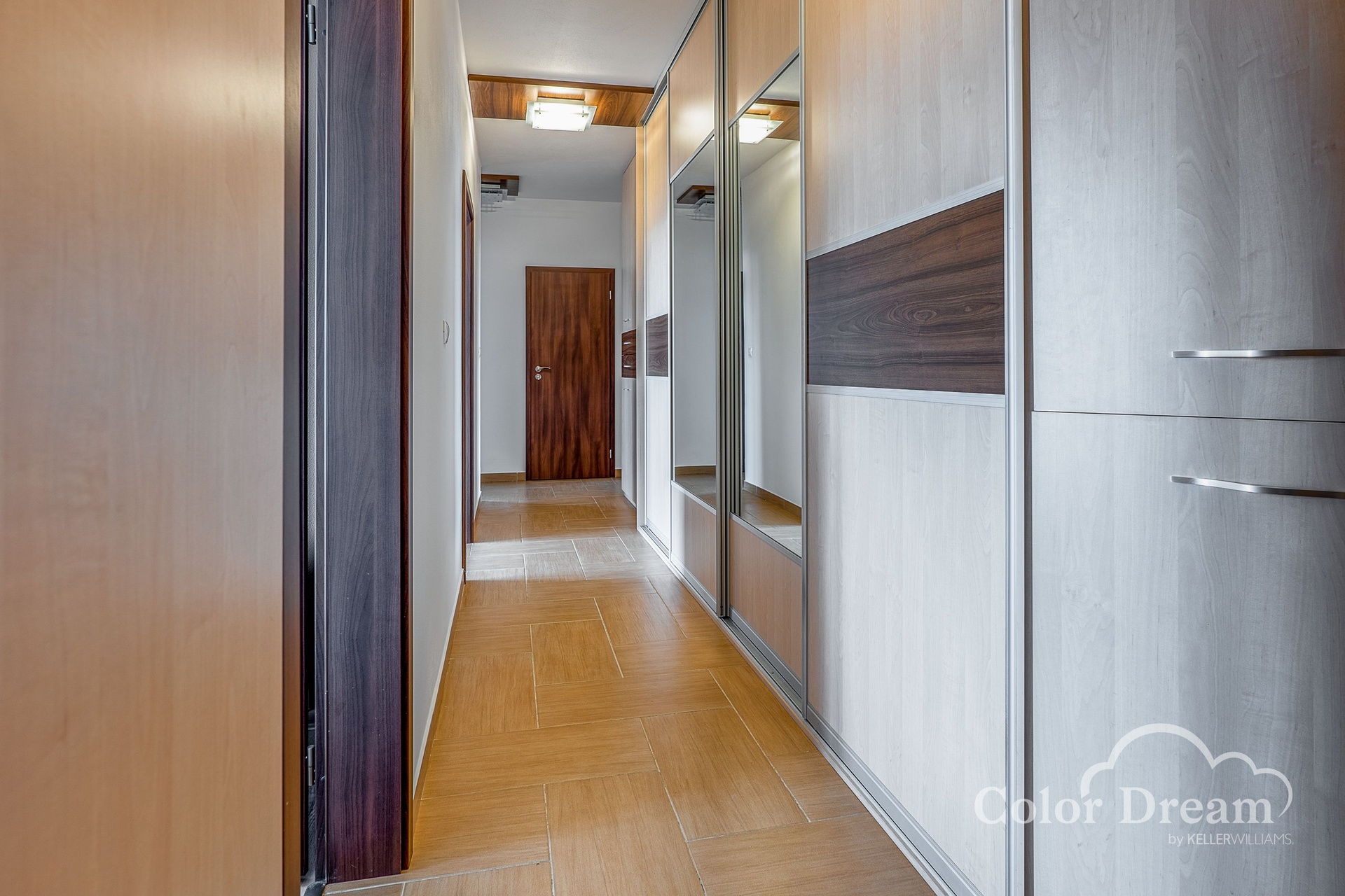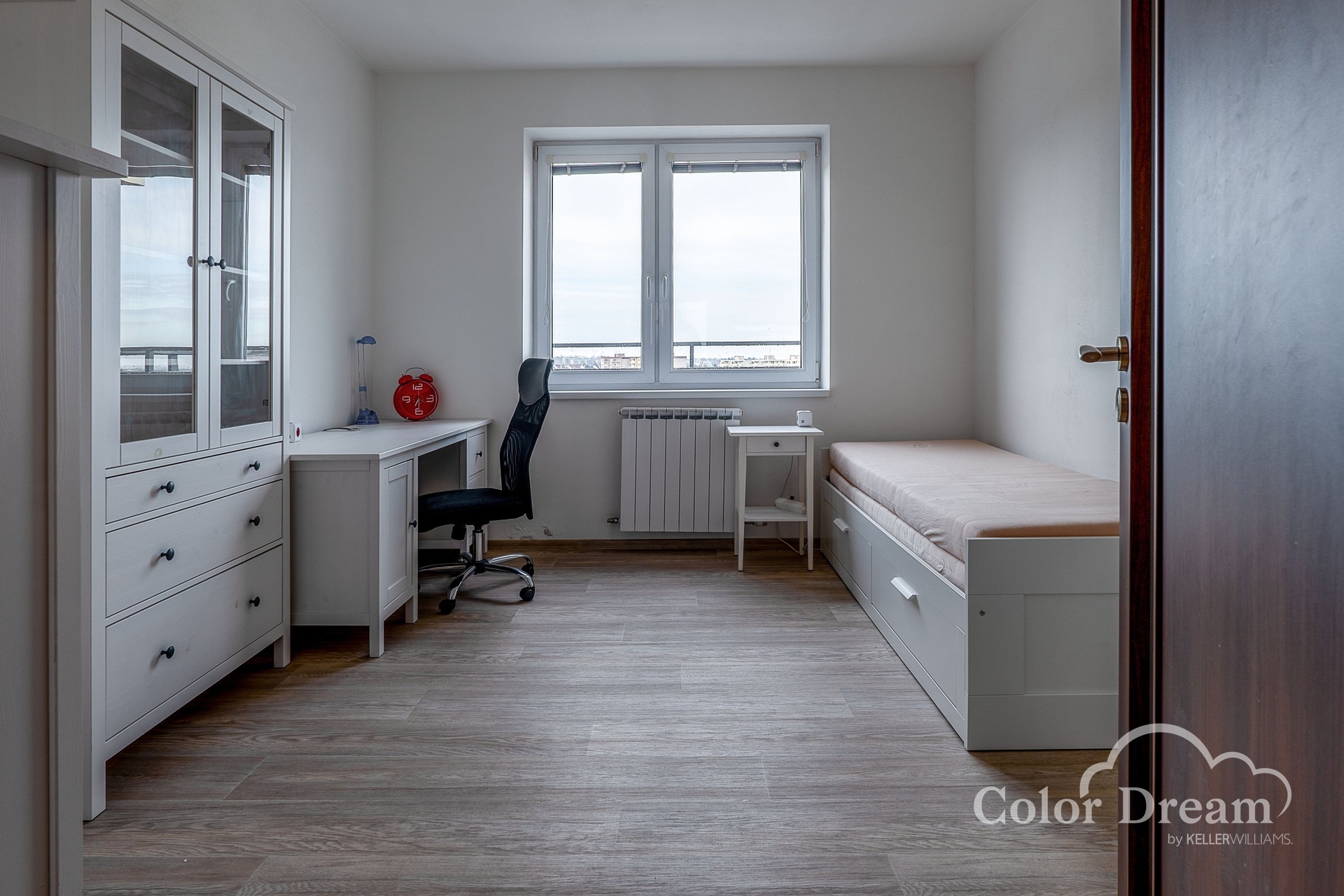 K dispozici je prostorná vstupní chodba s vestavěnými skříněmi, obývací pokoj, kuchyně včetně kuchyňské linky a spotřebičů a vstupem na velkou lodžii, ložnice se vstupem na malou lodžii, dětský pokoj, vybavená koupelna se sprchovým koutem a samostatné WC.
