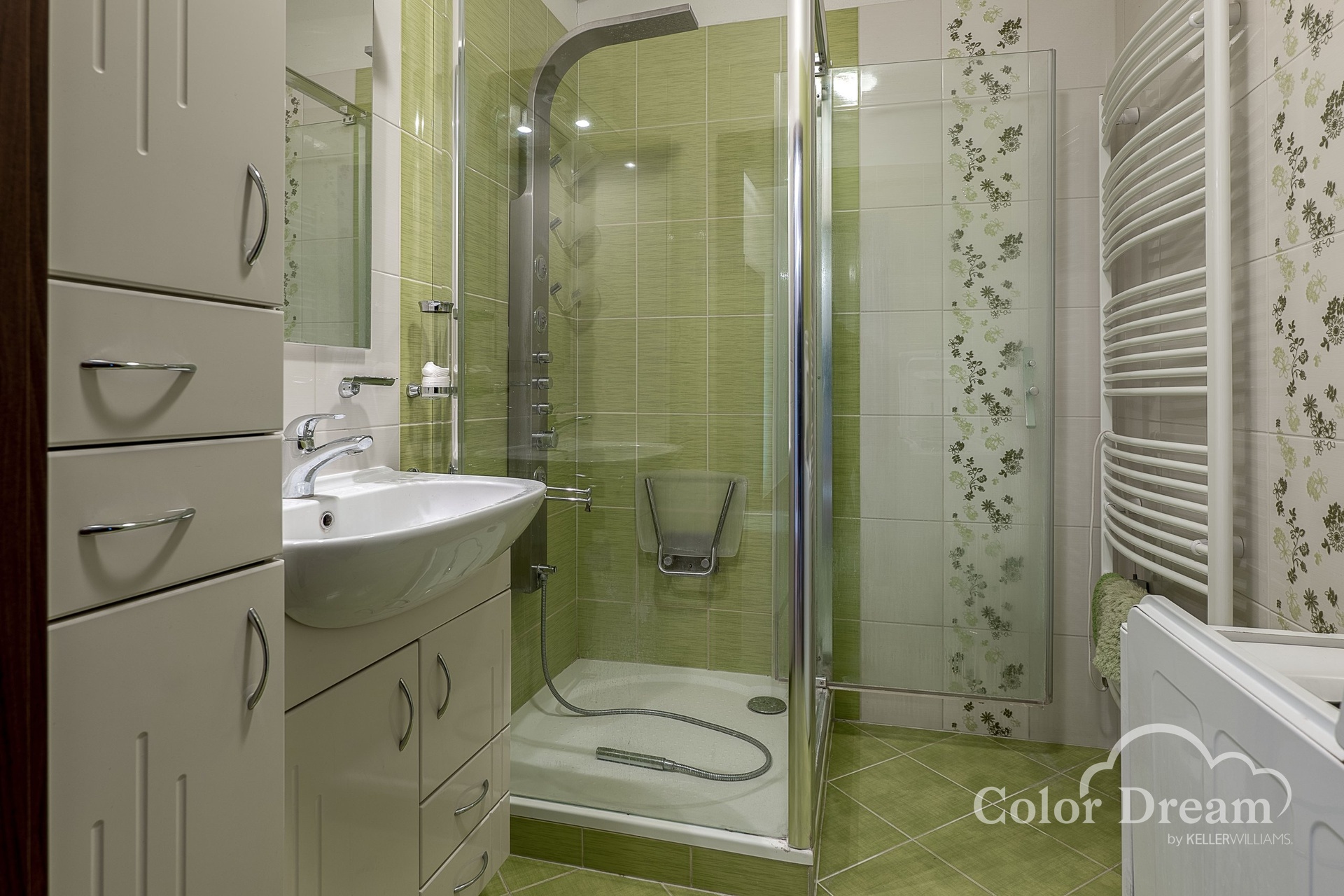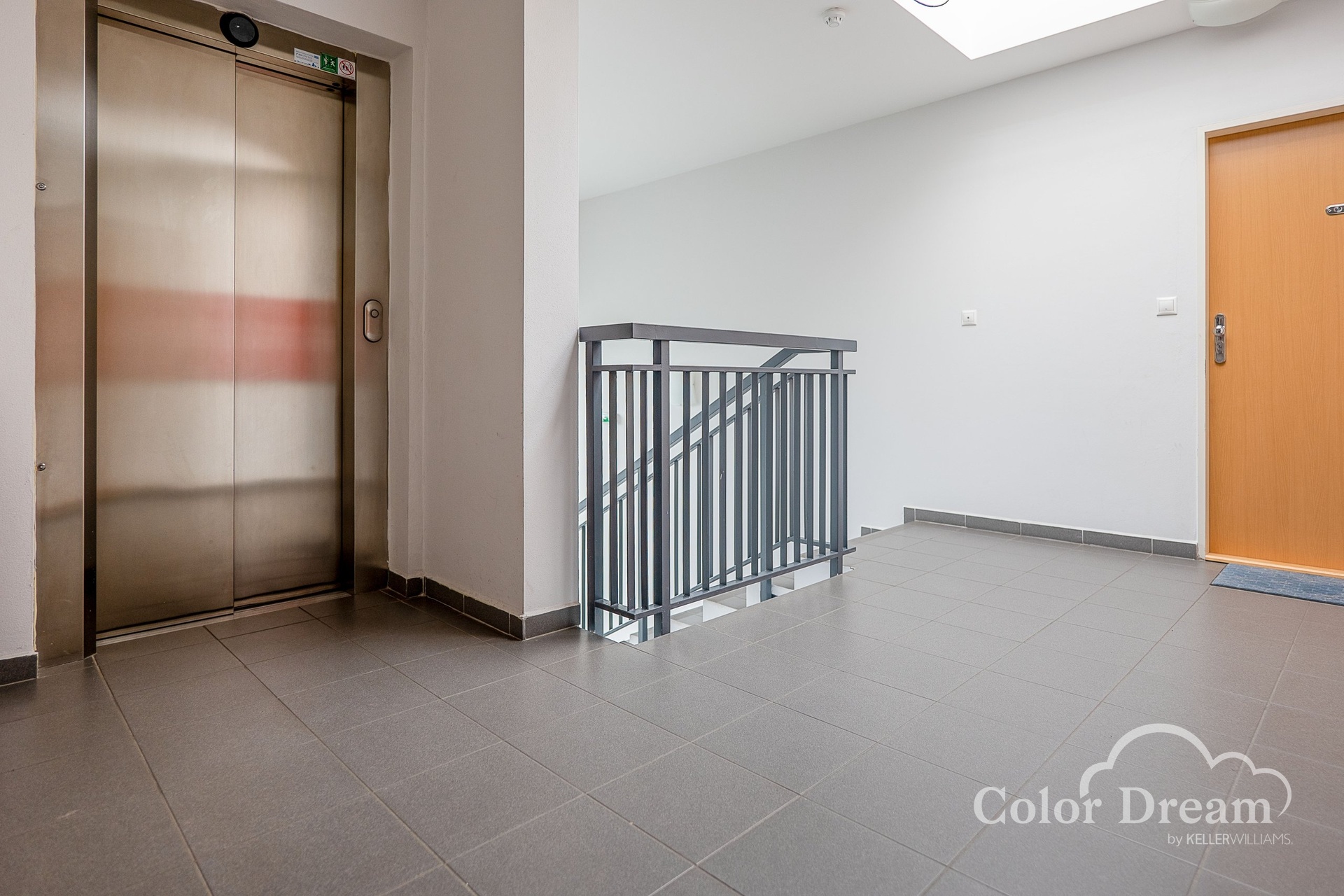 Tento cihlový byt s velkou lodžií přes celou šířku bytu orientovanou na SZ o velikosti 18,3 m2 a další menší lodžií orientovanou na JV o velikosti 9,7 m2 se nachází v posledním 5 NP, takže naprosto nádherný výhled do dalekého okolí.