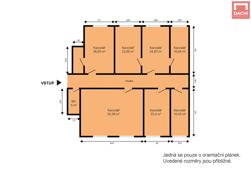 Pronájem souboru 7 kanceláří se zasedačkou a kuchyní, 200m², Olomouc Chválkovice