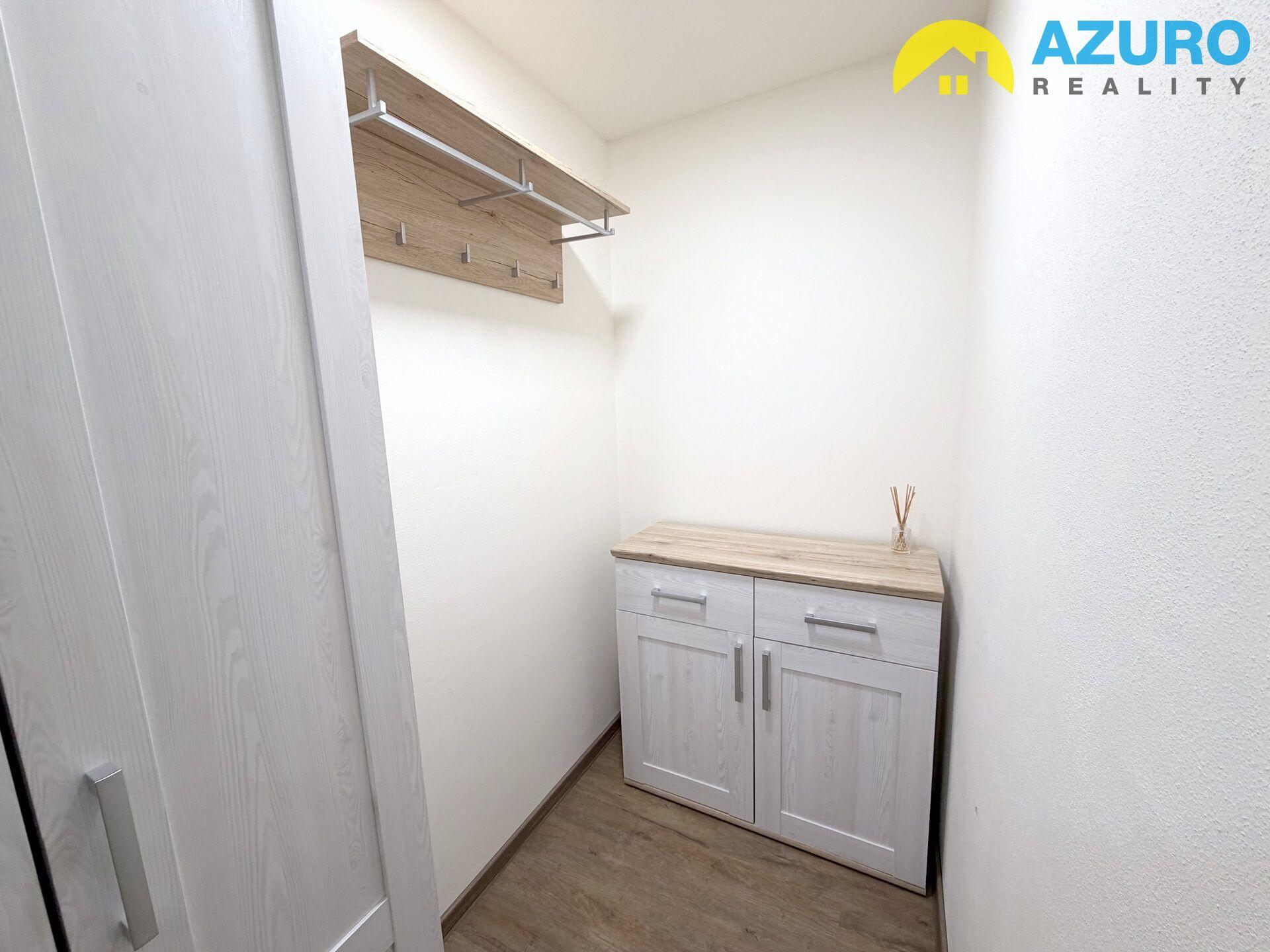 V bytě praktická kuchyňská linka s vestavěnými spotřebiči (indukční varná deska, el. trouba, digestoř) a lednicí s mrazákem, jídelní stůl se židlemi, ve zvětšené koupelně praktický sprchový kout, umyvadlo se skříňkou a pračka. Obývací pokoj je vybaven pohovkou, TV stolkem a komodou, v ložnici je šatní skříň, komoda a pracovní stůl se židlí, skříň a komoda jsou k dispozici i v předsíni. Podlahy vinyl / dlažba.