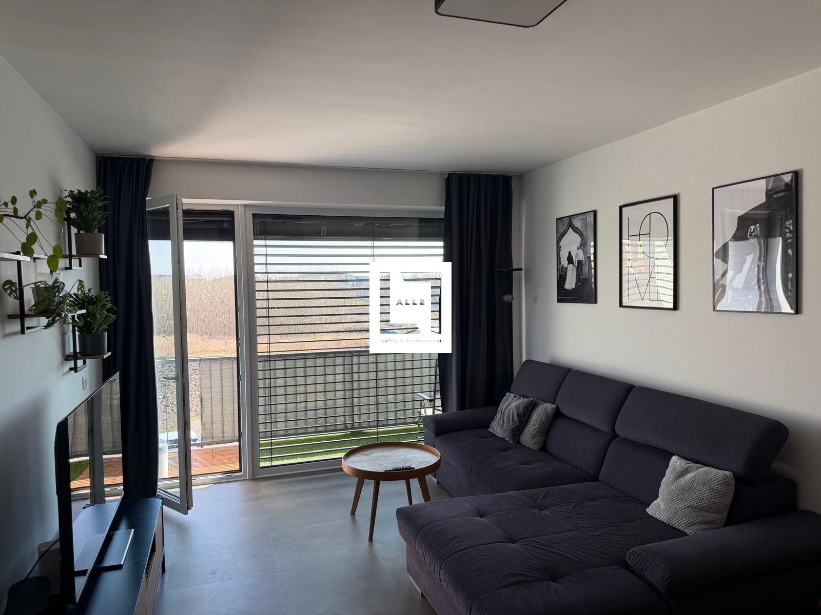 V zádveří je umístěna vestavená odkládací stěna a zrcadlová skříň. Kuchyňský kout je vybavený varnou deskou, digestoří, vestavěnou troubou, mikrovlnnou troubou a myčkou a je součástí obývacího pokoje, ze kterého je vstup na lodžii. V koupelně oceníte skříňky s úložným prostorem a sprchový kout, toaleta je samostatně. Z chodby je vchod do ložnice a do dalšího samostatného pokoje. K vyššímu standardu bydlení přispívá i podlahové vytápění. Jedná se o moderní bydlení, byt působí vzdušně, ale zároveň útulně.
