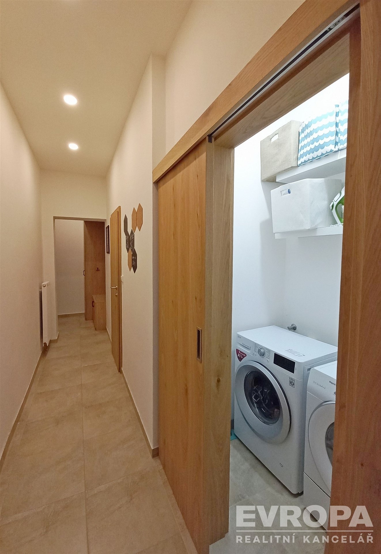 V interiéru byly použity kvalitní materiály – dřevěné podlahy v obytných místnostech a praktická dlažba v chodbě. Velkým benefitem je vestavěný nábytek (skříně i obývací stěna), který zůstává součástí bytu. Dále moderní kuchyňská linka a vlastní plynový kotel pro vytápění i ohřev vody.