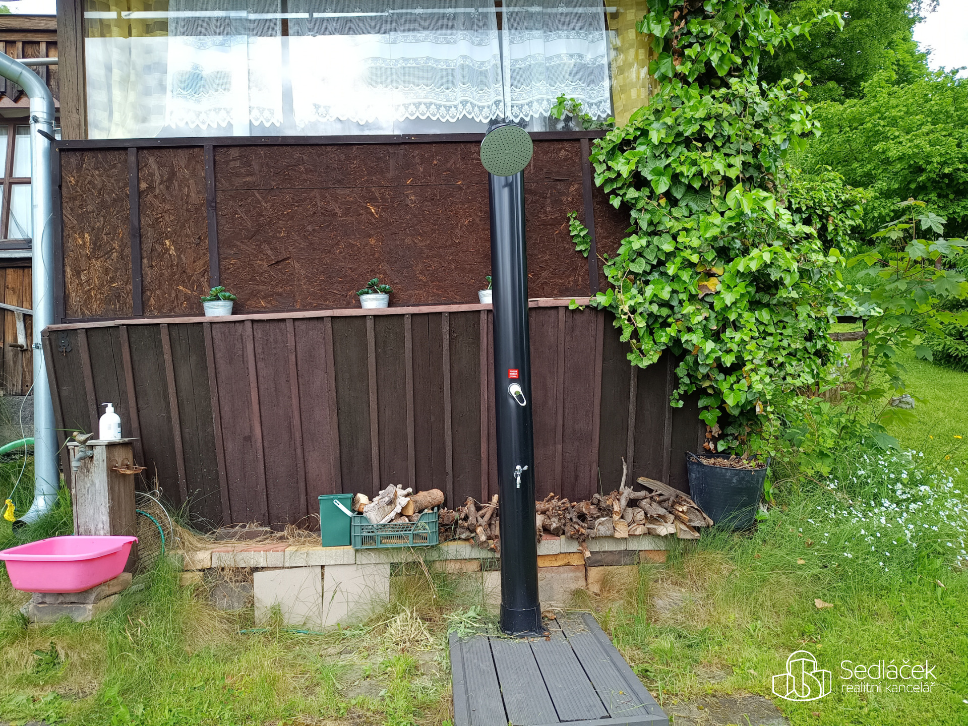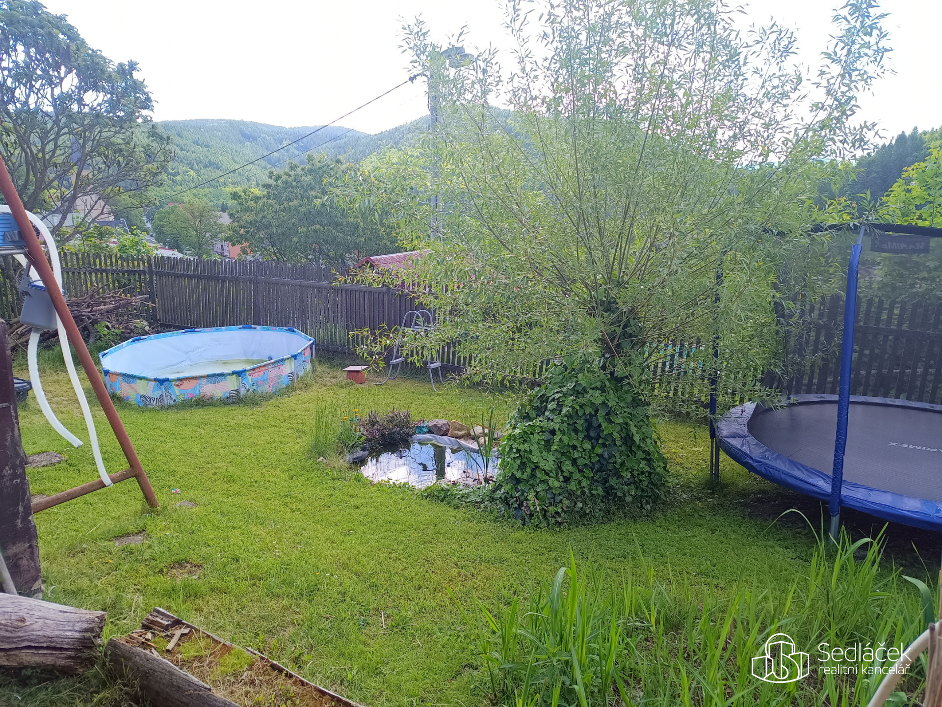 Nadzemní bazén, solární venkovní sprcha, trampolína