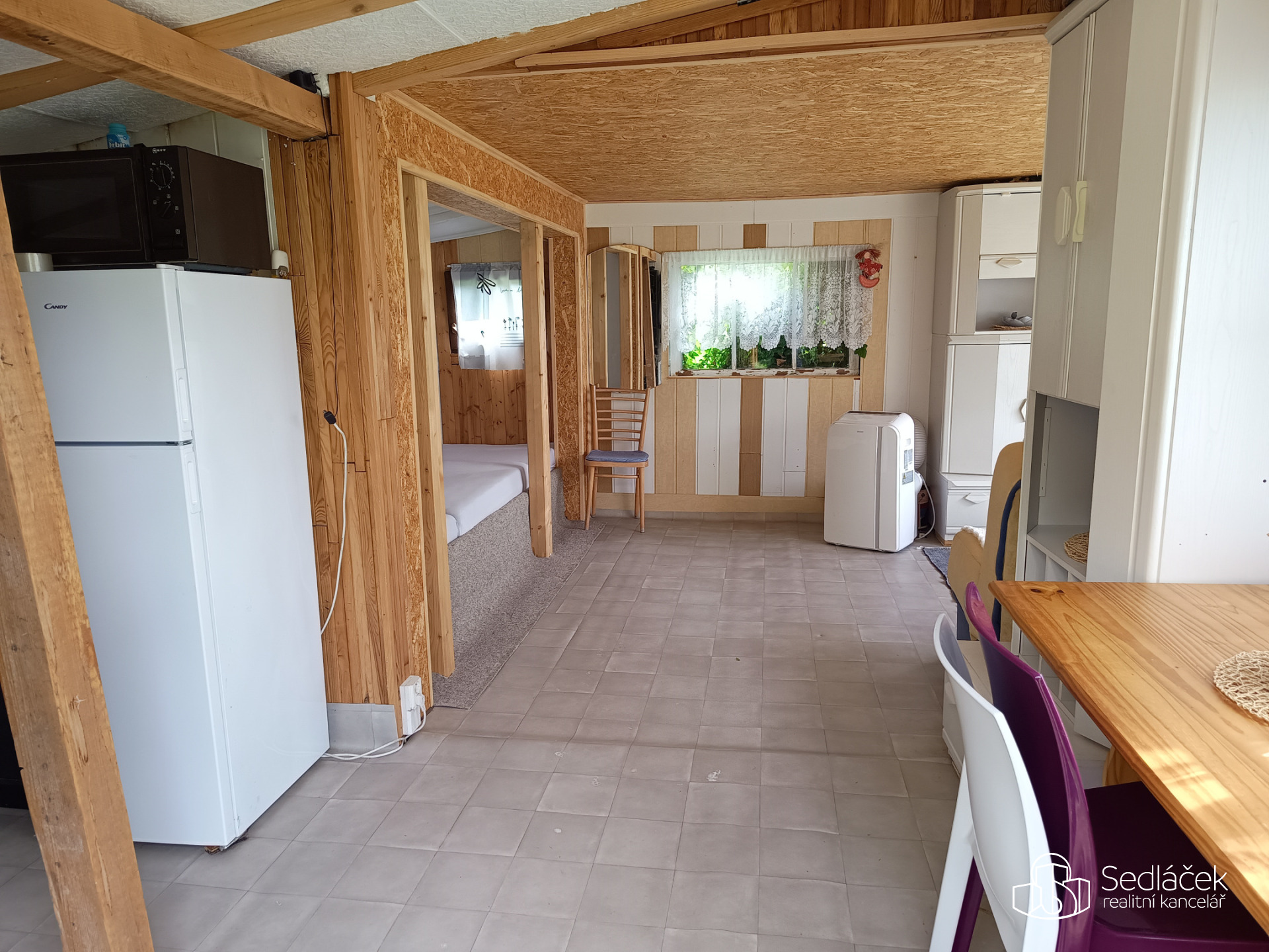 Vybavená chata s klimatizací – kuchyňský kout s vařičem, lednicí a mikrovlnnou troubou