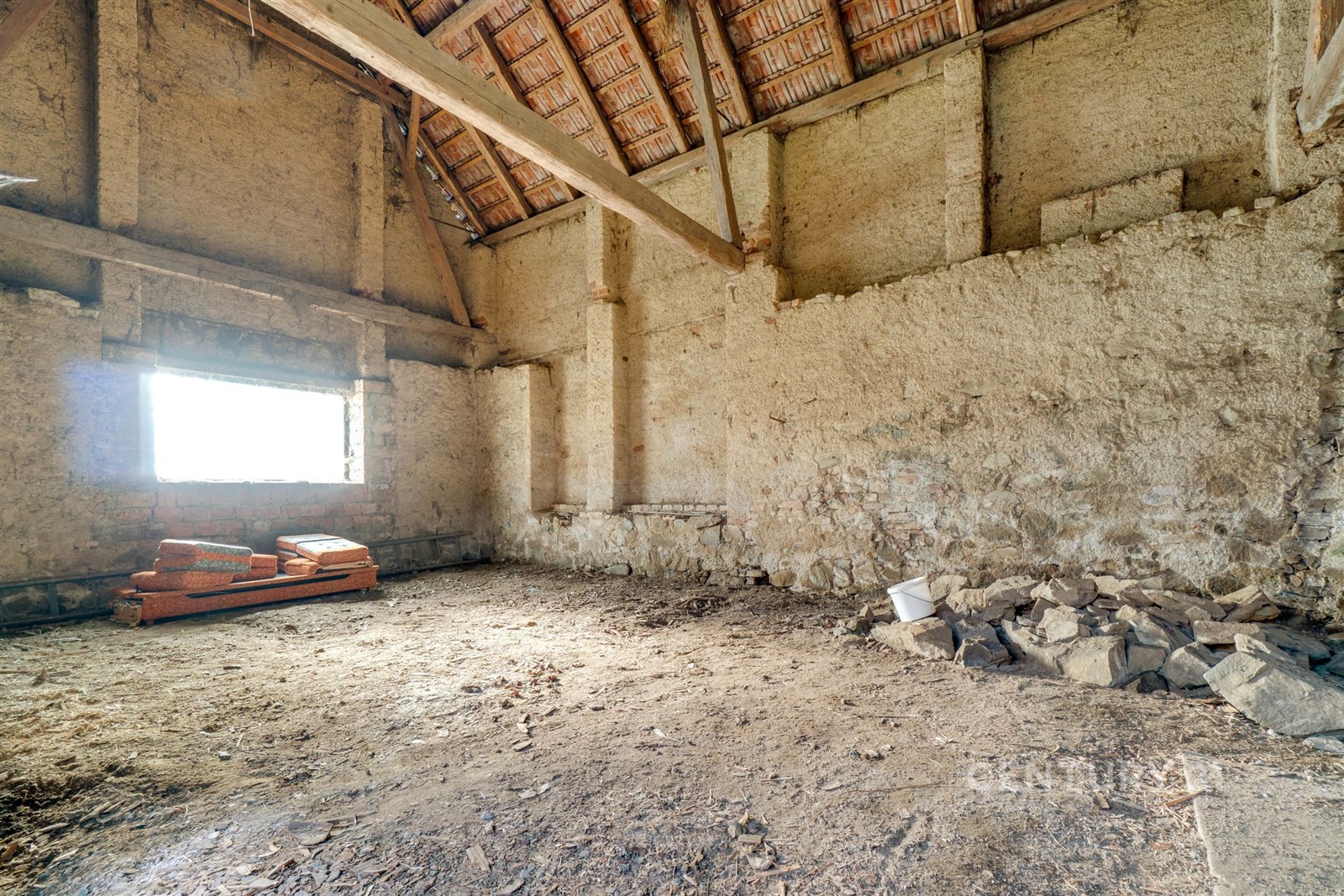k) stodola (k této stavbě je vypracována projektová dokumentace na další možný obytný prostor o dispozici 5 + 1, v patře se čtyřmi pokoji a se dvěma prostornými koupelnami s wc, v přízemí pak velký prostorný obývací pokoj s oddělenou kuchyní a sociálním zařízením).