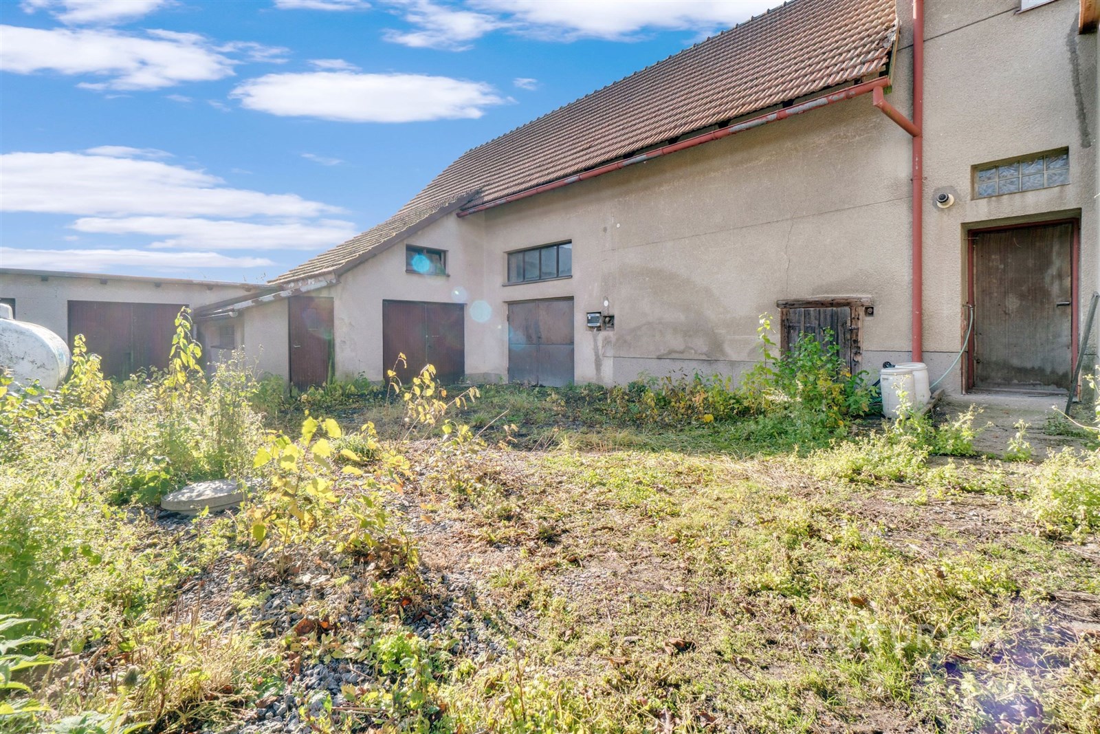 Na dvoře stojí prostorný rodinný dům, který si můžete přetvořit k obrazu svému, nebo ho přestavět či nahradit novou moderní stavbou. Díky své poloze a dostupností inženýrských sítí je ideálním počátečním bodem pro realizaci vašich plánů. Pozemek je oplocen a přístupný z hlavní komunikace. K dispozici je vlastní studna, septik; možné je i řešení domácí ČOV, která je připravena na dvoře. Velkou výhodou představuje stodola, která přímo vybízí k přestavbě pro komerční využití.