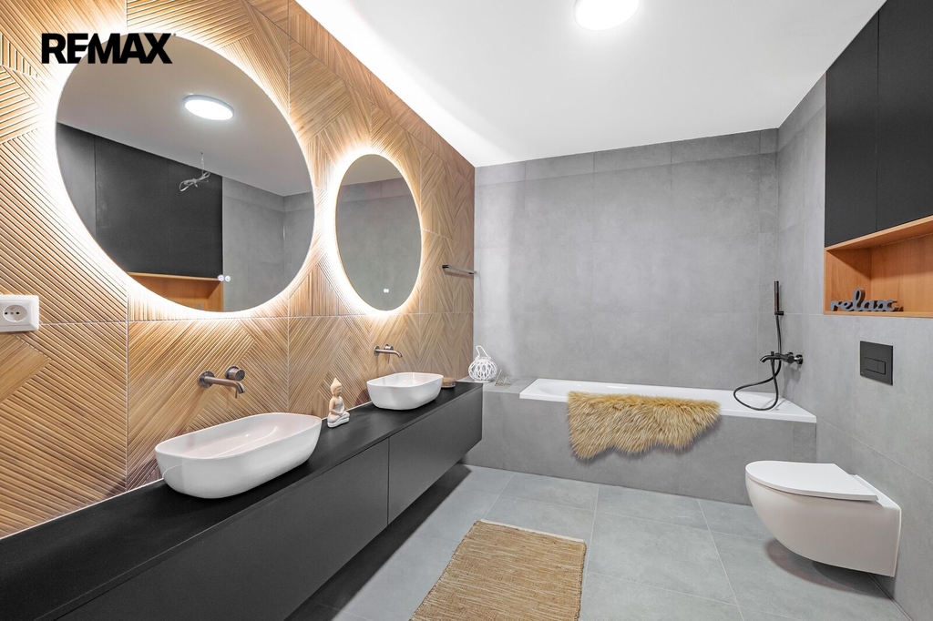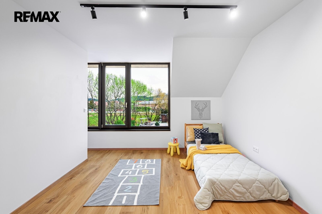 Součástí domu je i členitá zahrada ideální velikosti, která nabízí prostor pro odpočinek, hry dětí i rodinná setkání. Lokalita Třemblat poskytuje ideální rovnováhu mezi přírodou a dostupností města – klidné bydlení obklopené zelení, přitom rychlé spojení do Říčan i Prahy a kompletní občanskou vybavenost v dosahu. Z Říčan jste vlakem v Praze přibližně za 30 minut, na Chodov se autem dostanete zhruba za 15 minut.