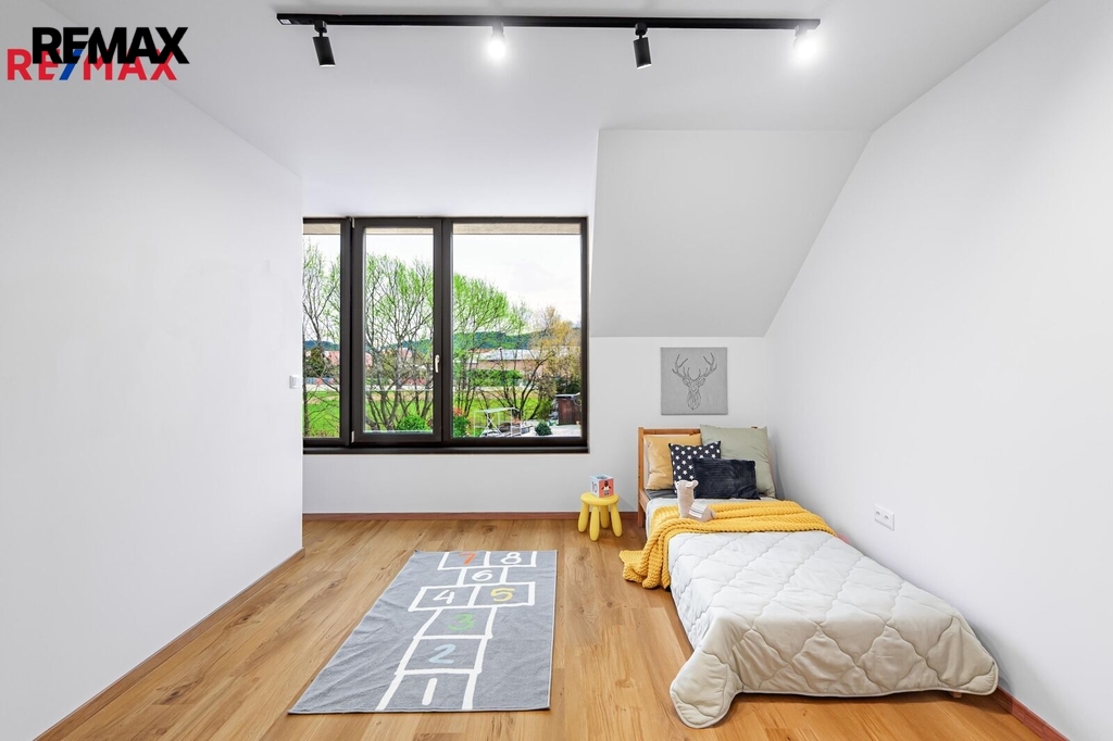 Součástí domu je i členitá zahrada ideální velikosti, která nabízí prostor pro odpočinek, hry dětí i rodinná setkání. Lokalita Třemblat poskytuje ideální rovnováhu mezi přírodou a dostupností města – klidné bydlení obklopené zelení, přitom rychlé spojení do Říčan i Prahy a kompletní občanskou vybavenost v dosahu. Z Říčan jste vlakem v Praze přibližně za 30 minut, na Chodov se autem dostanete zhruba za 15 minut.