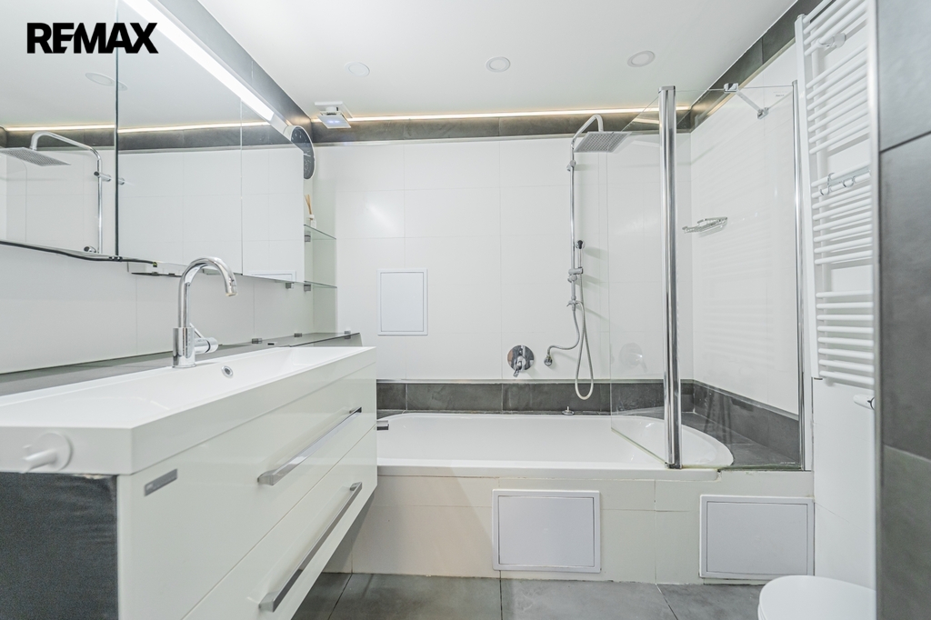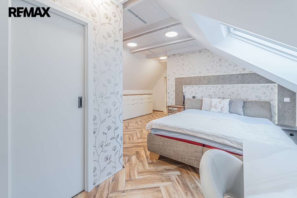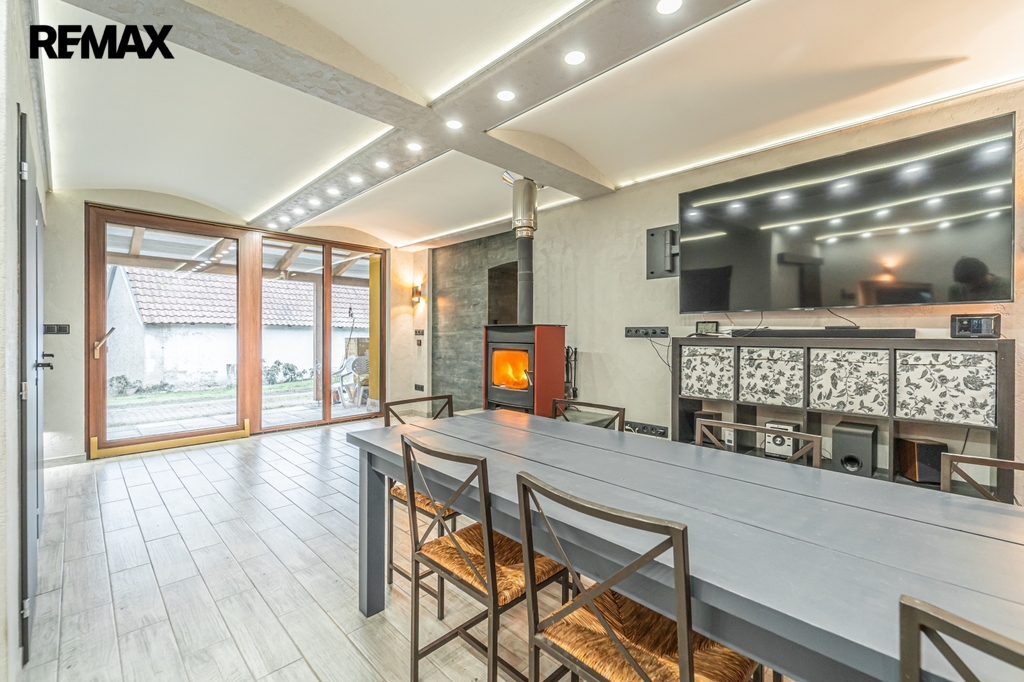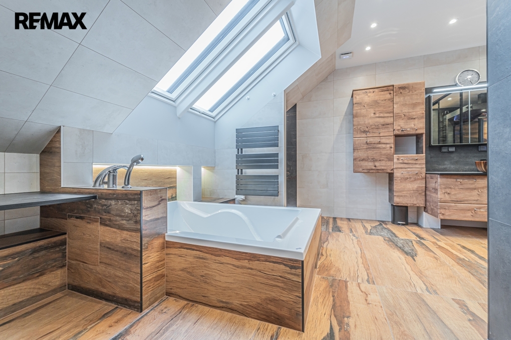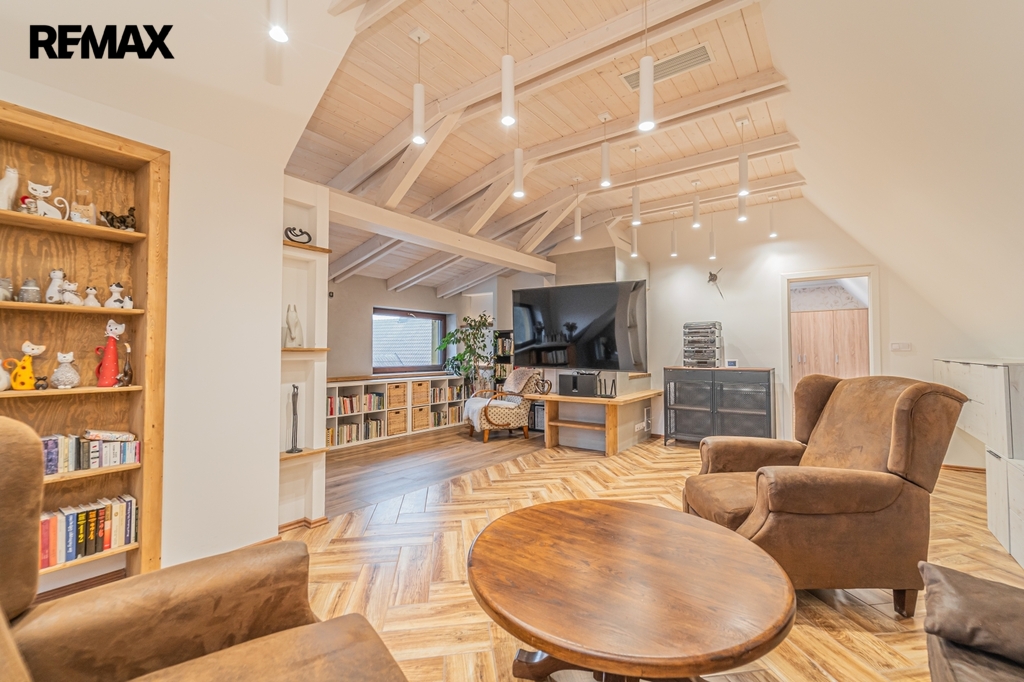 Bytová jednotka č.2 je po kompletní rekonstrukci. Dispozičně se jedná o 4+1 rozdělen do dvou pater se dvěma koupelnami s celkovou plochou cca 180 m². Součástí je i soukromý balkon s výhledem do zahrady. Byl zde promyšlen každý detail. Vytápění a ohřev vody je řešeno tepelnými čerpadly (voda-vzduch a vzduch-vzduch). Dále v rámci vytápění - podlahové teplovodní vytápění, krbová kamna a radiátory. Vstup na zahradu zajištuji velká francouzská okna, kde ve vnitřní části je zabudována el. rohož proti rosení. Další velkou výhodou je systém IGLU (Jde o ideální způsob izolace podlahy proti vlhkosti a odvětrání). Kamna mají saní vzduchu z venkovního prostoru. Komín je troj komorový. Hned u francouzského okna je připraven vývod na mobilní klimatizaci. V suterénu je připraven prostor pro soustavu čističky/filtrace vody. Dále je v suterénu připraven vývod kabelu vč. prostoru pro baterie na solární panely. V celé horní části je vzduchový systém pro chlazení či vytápění, který je napojen na tepelné čerpadlo (vzduch-vzduch)