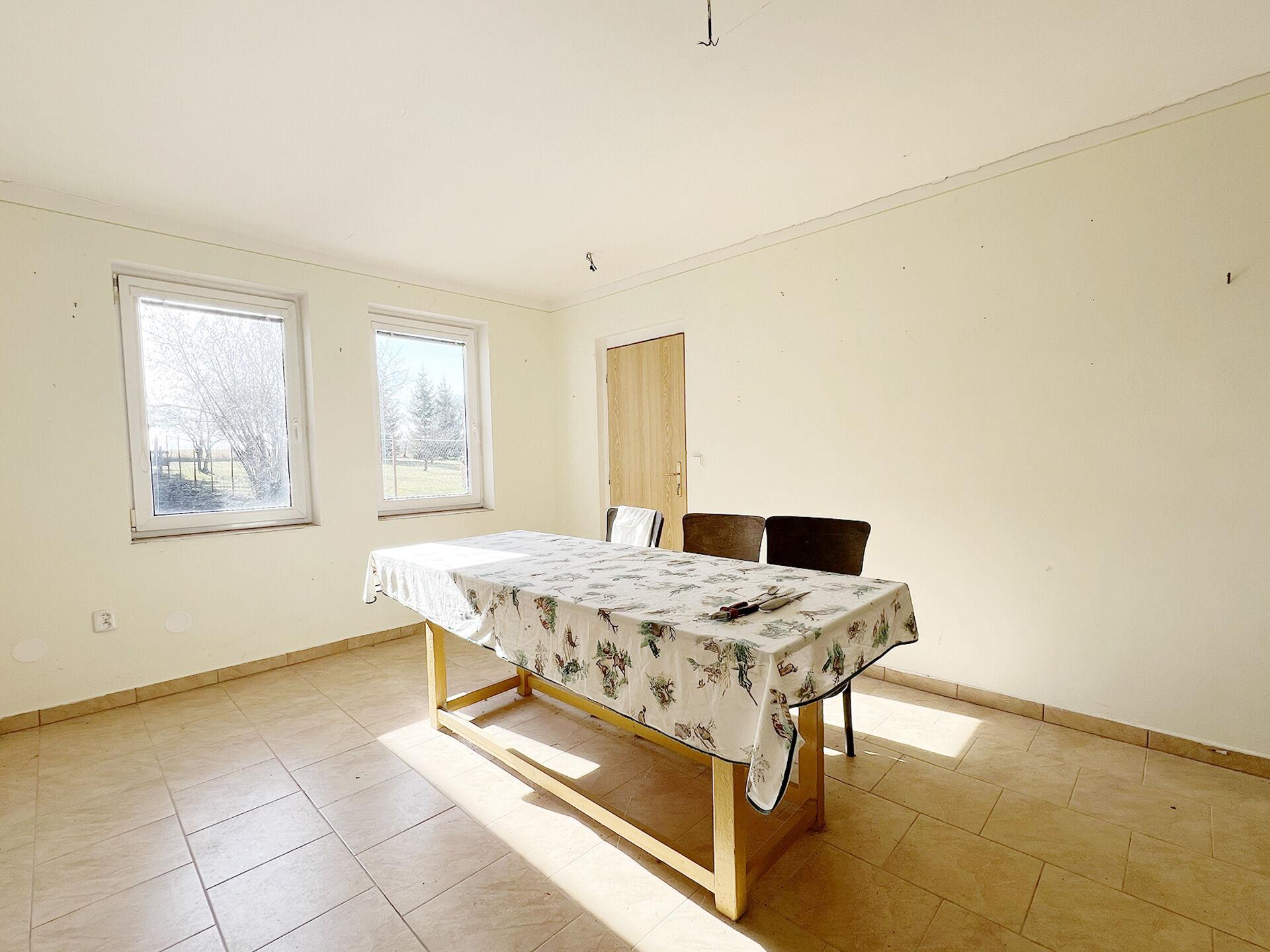 Naproti domu stojí samostatný výměnek, ve kterém je kuchyň, koupelna, pokoj, špajz a předsíň, dílna, garáž a sklep. Oba domy jsou zděné, je v nich zavedena elektřina, topí se v kamnech a jsou připojeny na studnu a kanalizaci. Na pozemek je přiveden vodovod.