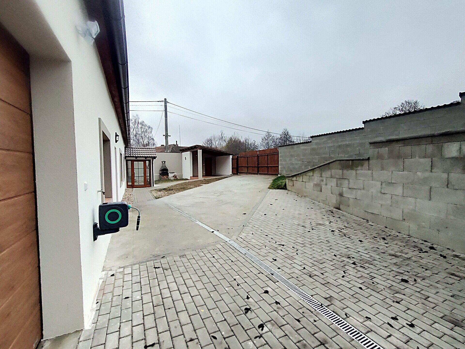 U domu je pergola 11 m2, sklad nebo dílna 6 m2, venkovní krb. Na dům navazuje prostorná garáž 20 m2, s automatickými vraty na dálkové ovládání. V garáži třífázová zásuvka 400 V, 32 A.