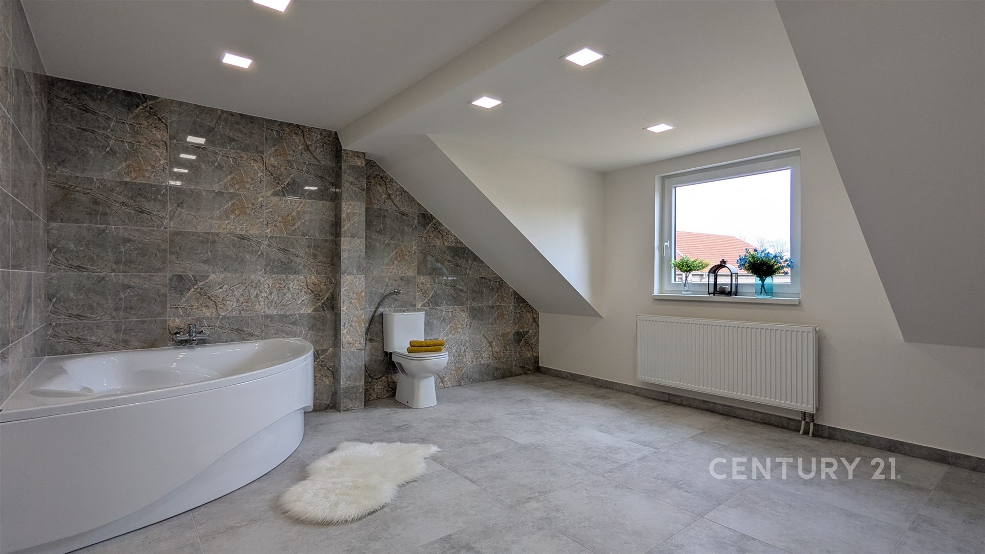 Luxusní koupelna (17,3 m²) s vanou i sprchový kout.