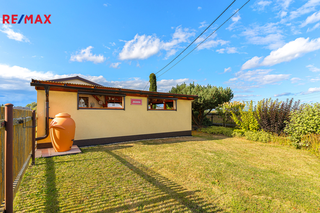 Na pozemku o velikosti 587 m2 stojí rekreační objekt o velikosti 2+kk se sociálním zázemím, v podobě modulového domku, s užitnou plochou přes 30 m2. Rozšířený je o pergolu s kompletní venkovní kuchyní, jídelnou a posezením – dalších více než 30 metrů prostoru pro relax i společné chvíle.