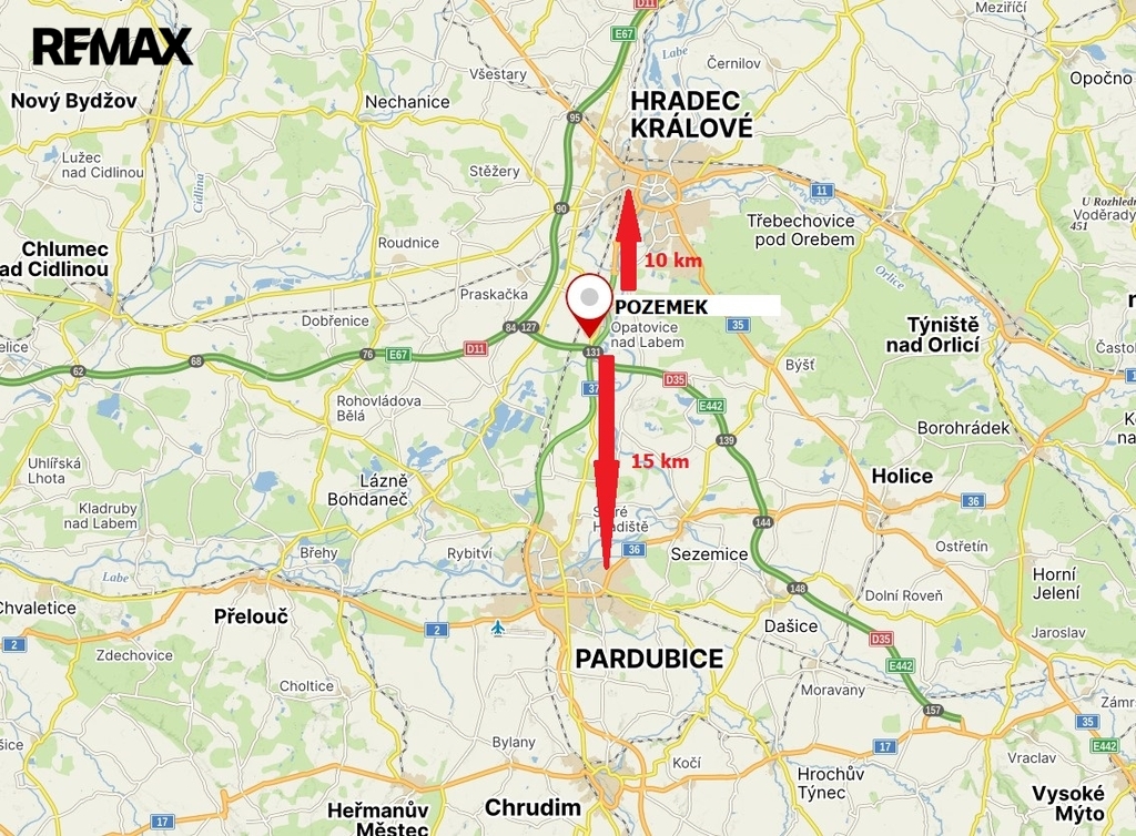 4) Příznivá cena oproti pozemkům v Pardubicích nebo v Hradci.