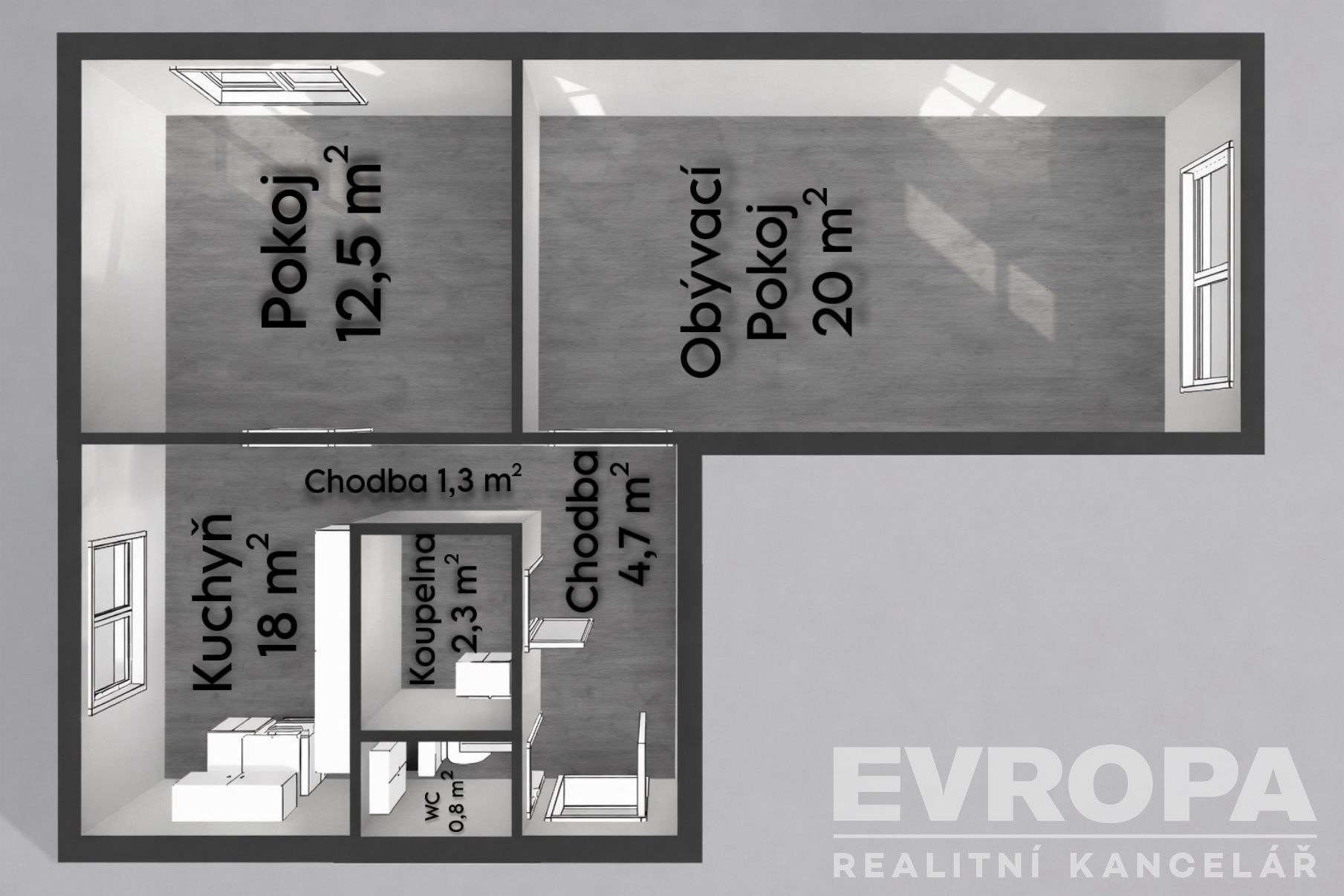 - Dispozice bytu: 2+1