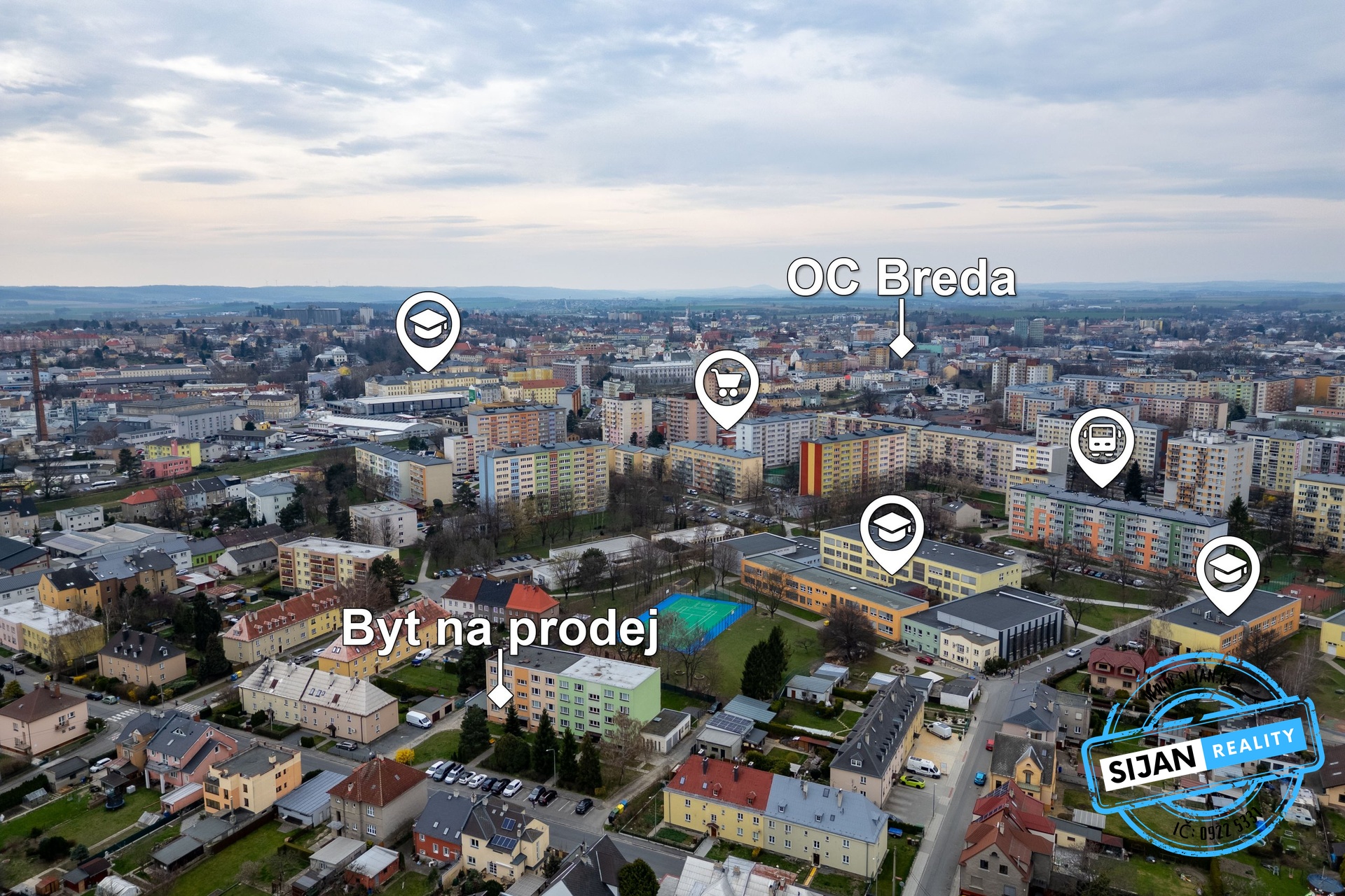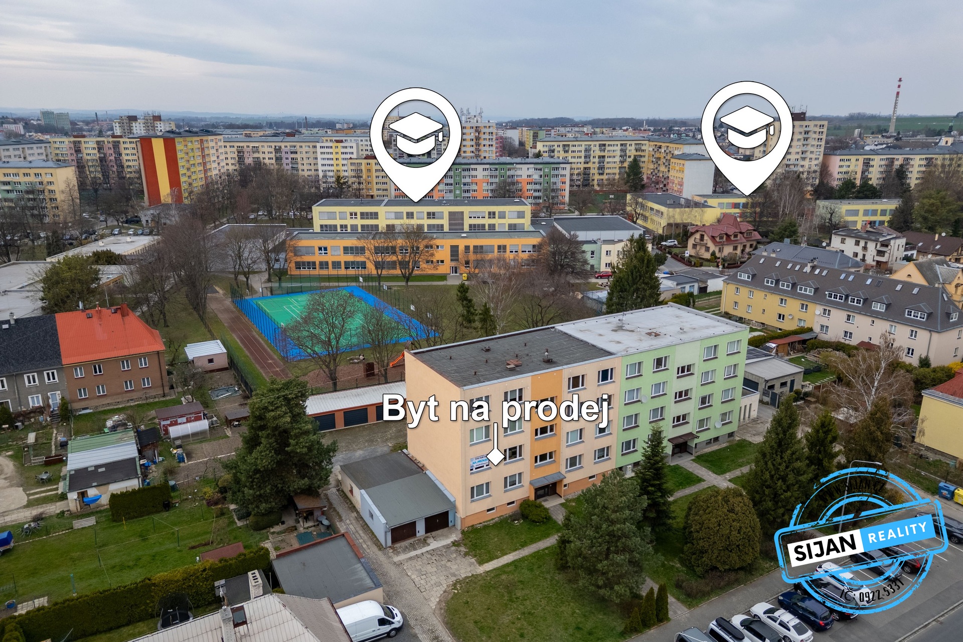 V blízkosti bytu je škola, školka, obchody a další občanská vybavenost.