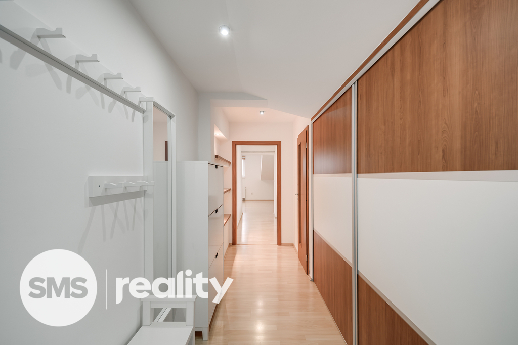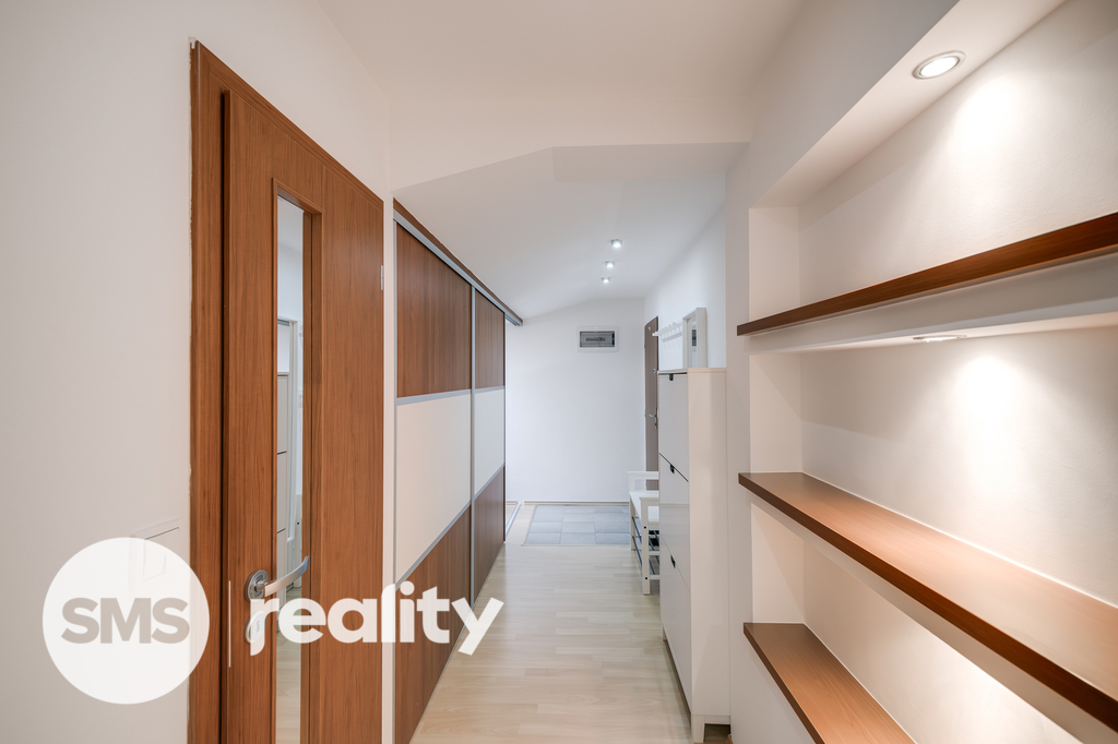Byt je situován v cihlovém domě a prošel rekonstrukcí přibližně před 10 lety. Praktická dispozice nabízí dostatek prostoru jak pro pohodlné bydlení, tak i pro práci z domova. Součástí je kuchyňská linka vybavená vestavěnými spotřebiči (elektrická varná deska, trouba, myčka, digestoř) a nechybí ani vestavěné skříně poskytující dostatek úložného prostoru.