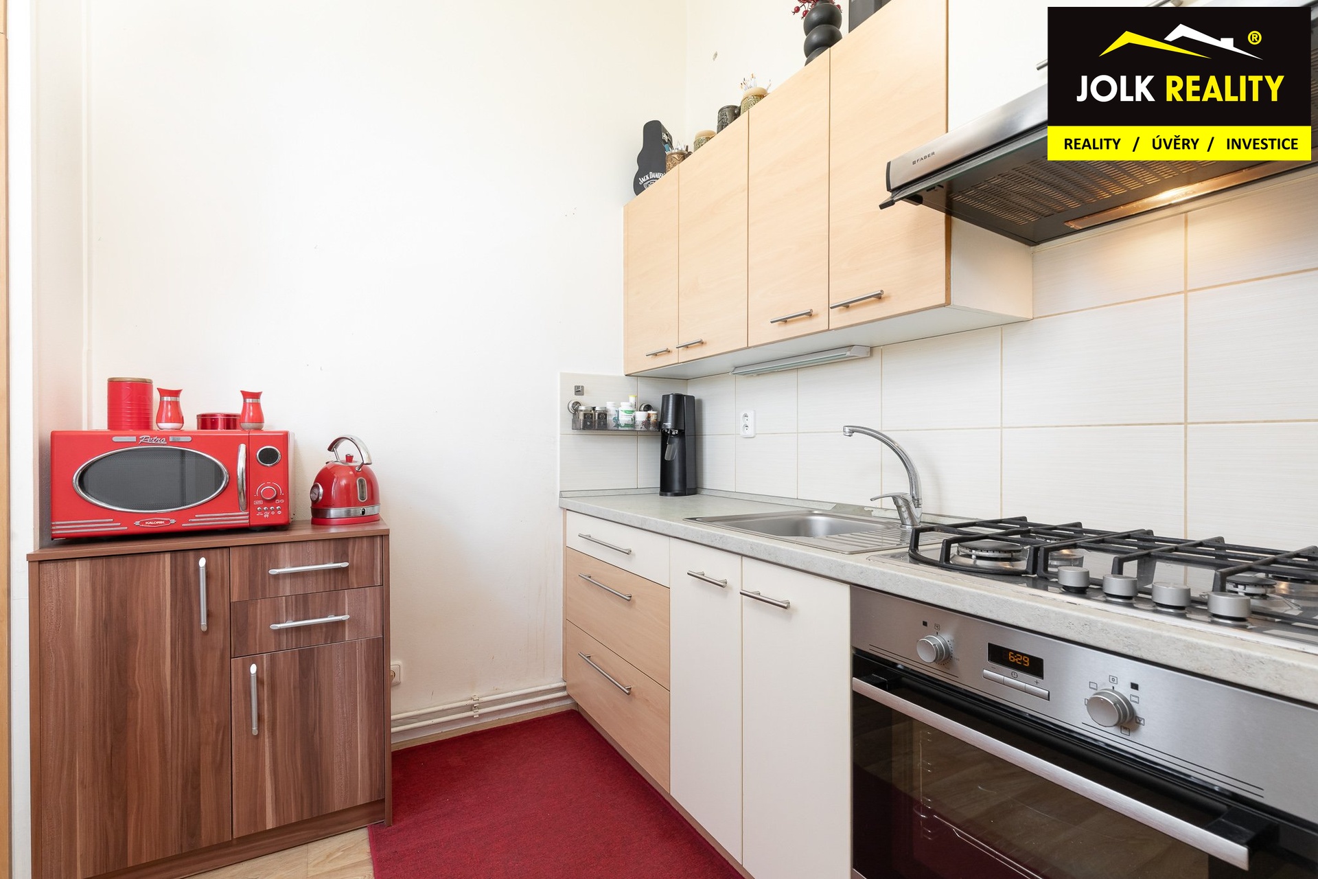 Bytová jednotka rovněž prošla rekonstrukcí - kuchyňká linka, nově vybavená koupelna s WC v plastovém potrubí včetně napojení na stoupačky, vestavěná skříň v předsíni a letos instalace nového plynového kondenzačního kotle s vyvložkováním komínu.
