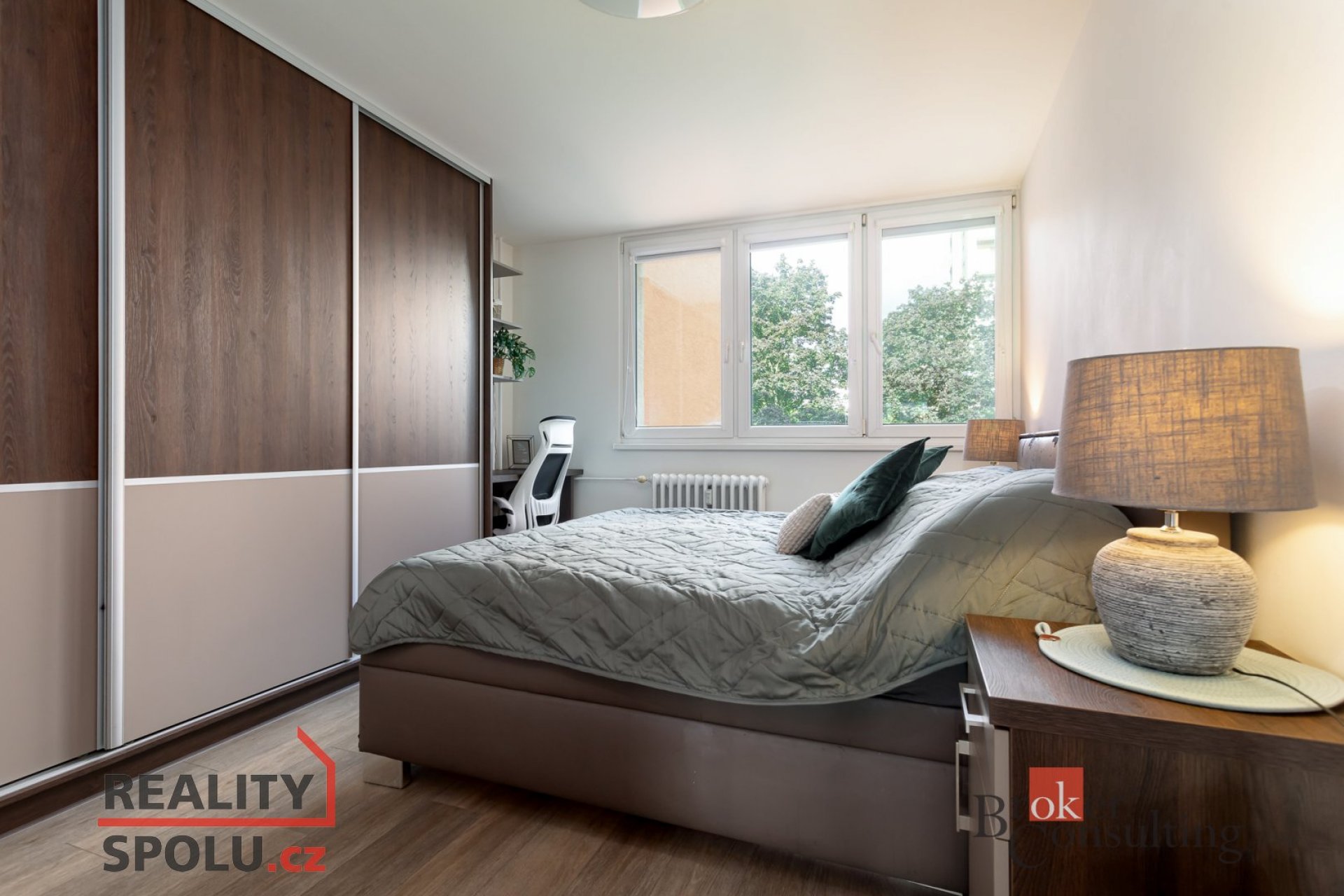V chodbě, ložnici i dětském pokoji jsou praktické vestavěné skříně. Byt může být předán včetně vybavení (stoly, skříně, postele, televize, pračka, myčka, lednice apod.), konkrétní rozsah je předmětem dohody.