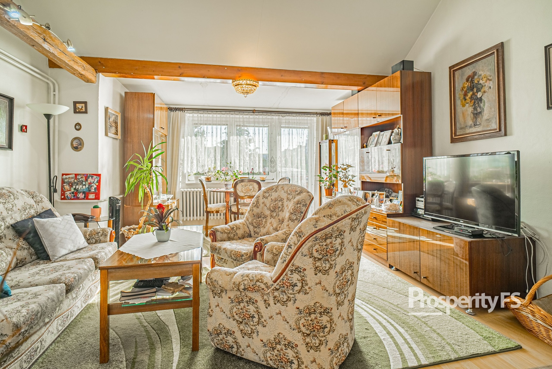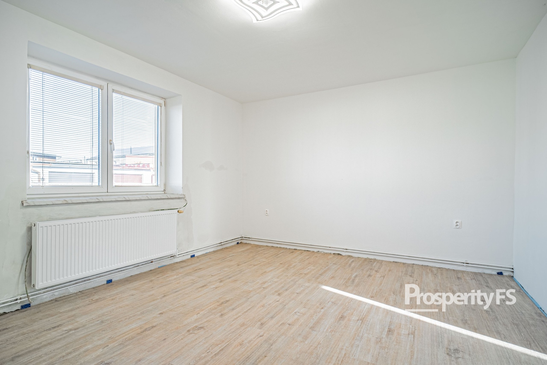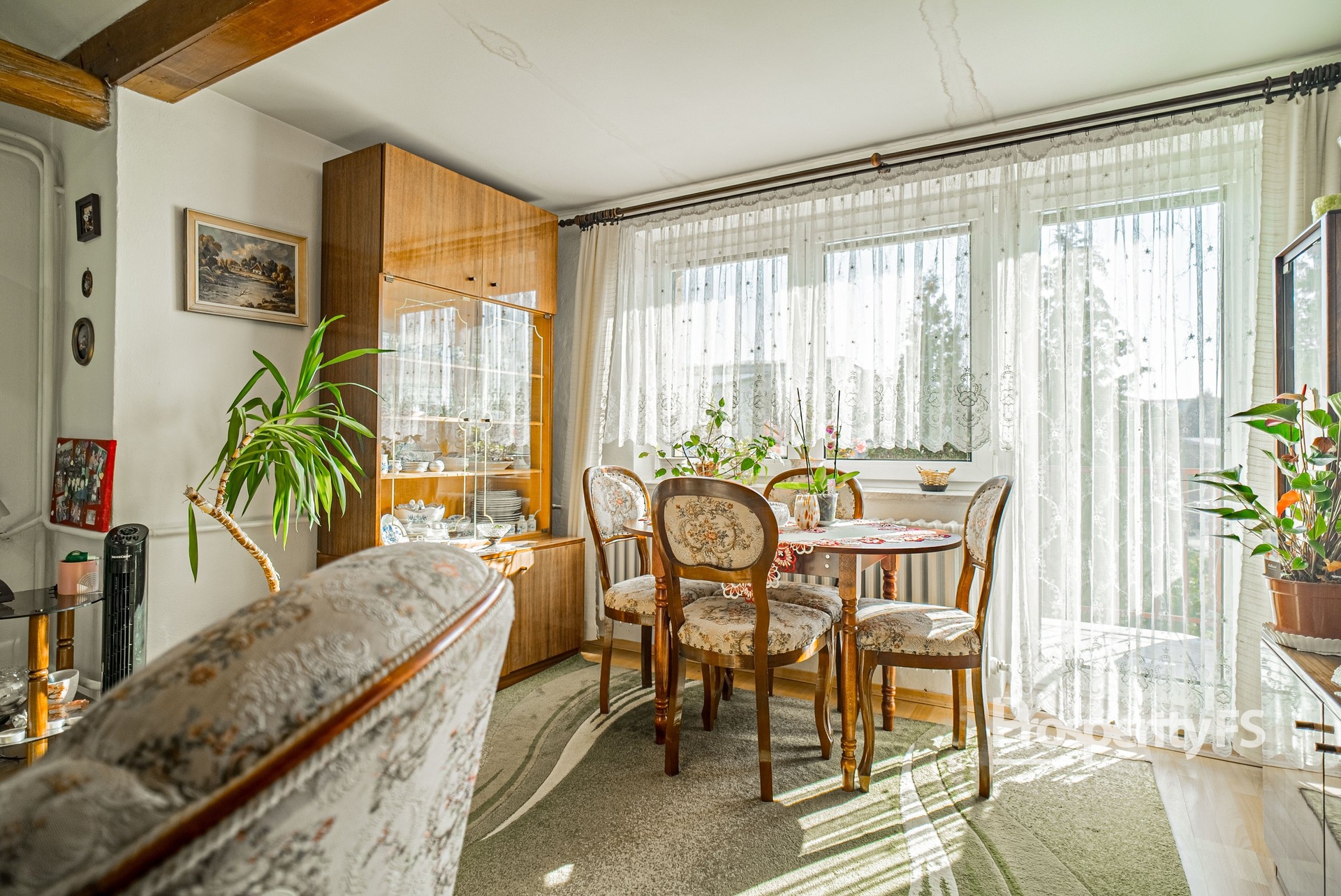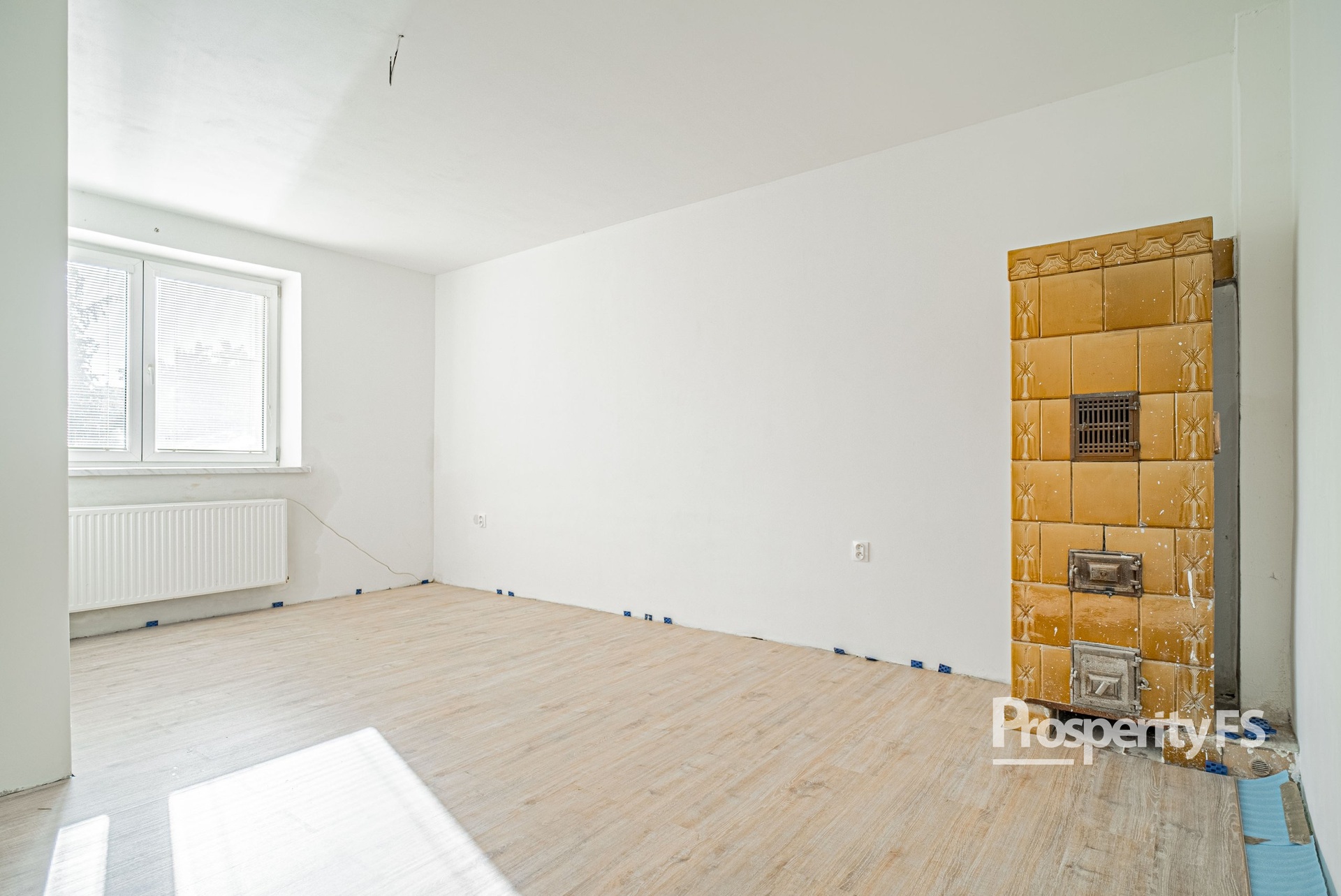 V patře najdete bytovou jednotku 3+1 s velkým obývacím pokojem vybaveným kamny a balkonem, dvěma neprůchozími prostornými ložnicemi, kuchyní, samostatnou koupelnou a WC.