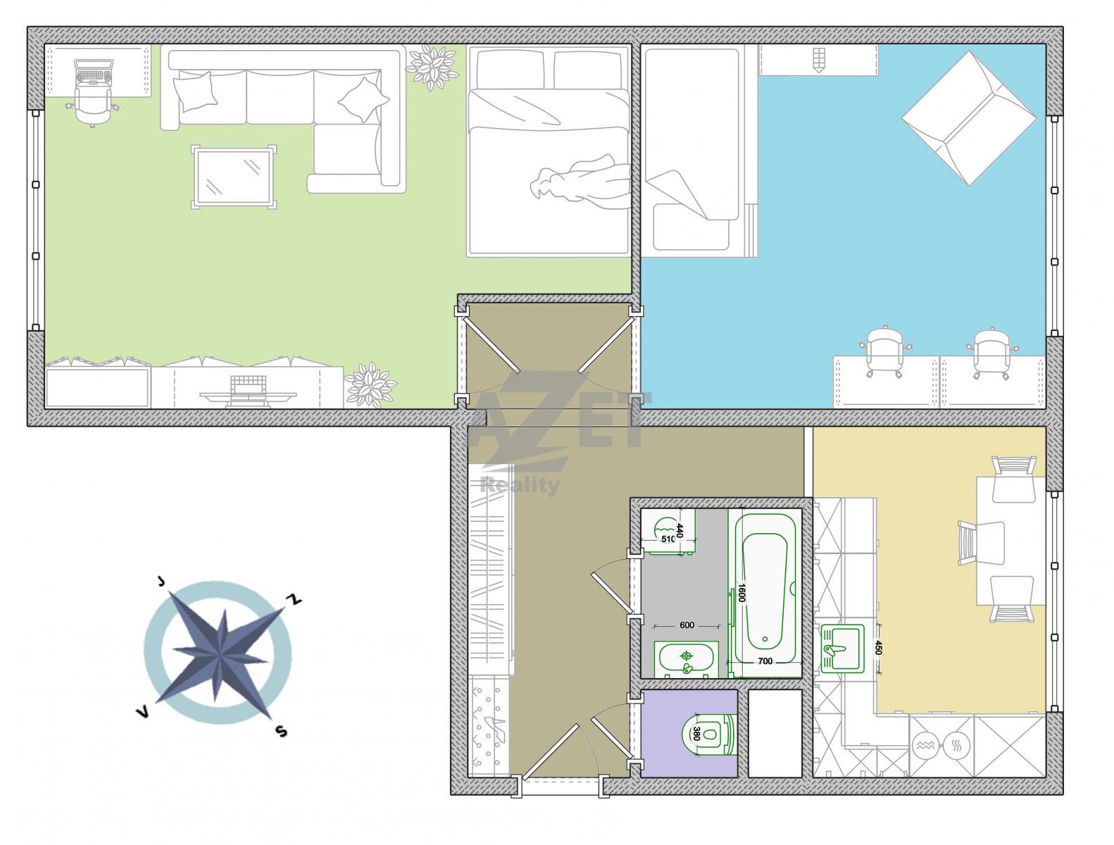 | Dispozice/podlahová plocha: | 2+1/49 m² |