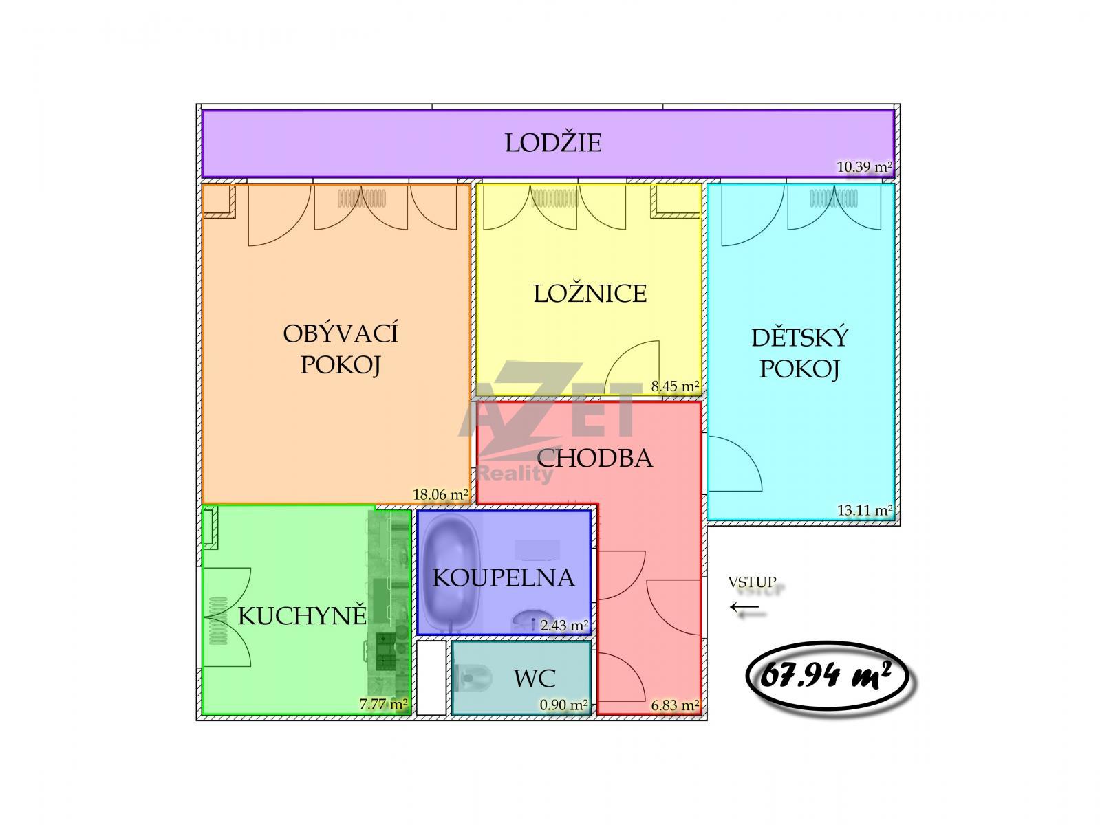Celková plocha bytu - 67,94 m2