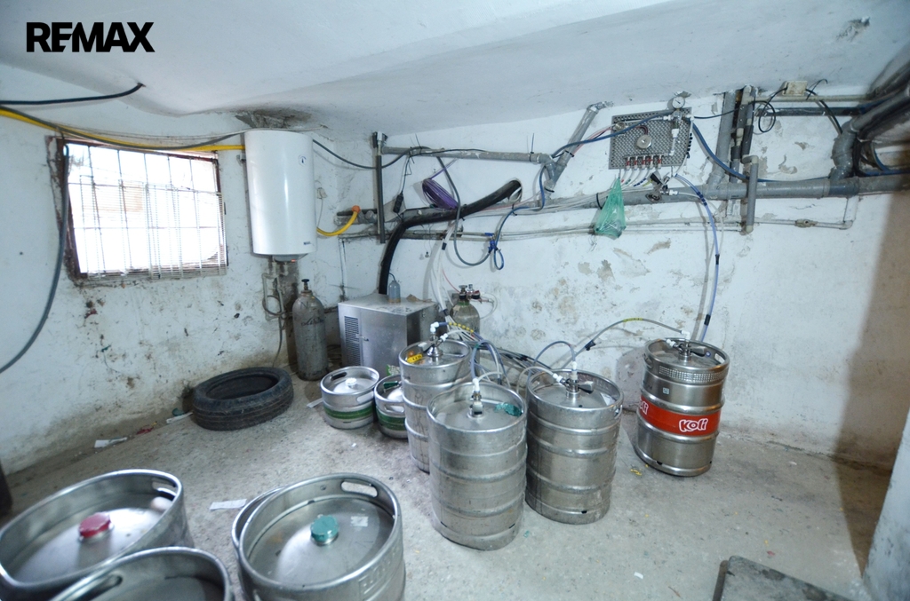 Objekt je částečně podkslepený (45m²), sklep je využíván pro restauraci jako sklad a zázemí pro výčep (sudy, chlazení, atd.). Vytápění objektu zajišťuje plynový kotel, součástí prostor je klimatizace.
