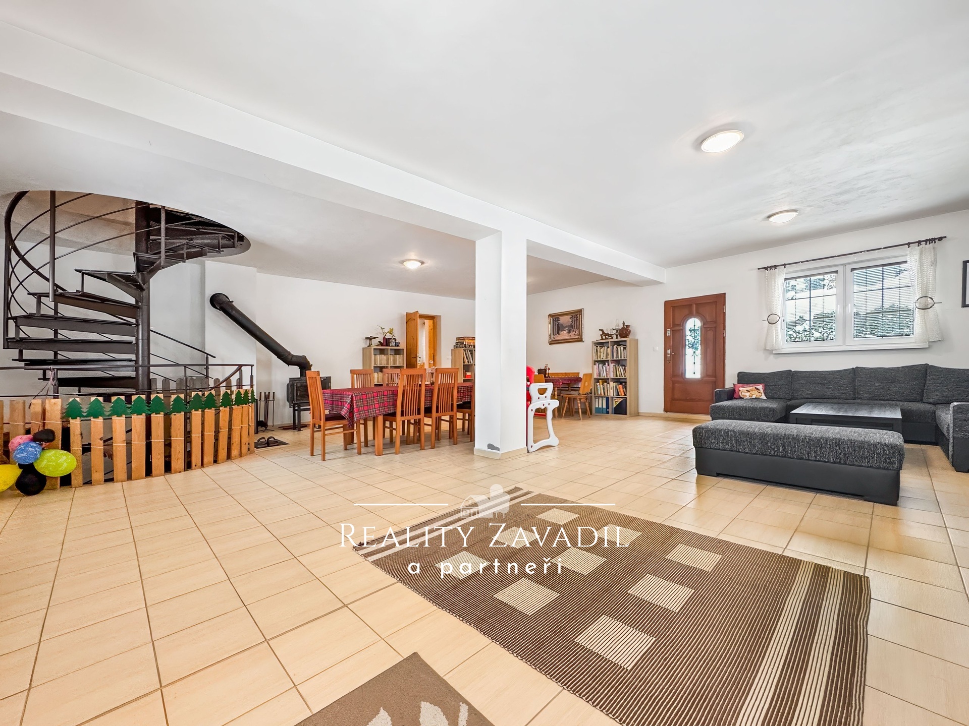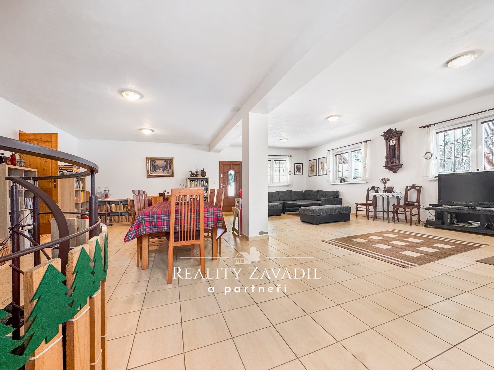Dům disponuje zastavěnou plochou přibližně 200 m² a užitnou plochou kolem 320 m², vše na pozemku o rozloze 1 244 m². V přízemí se nachází prostorná kuchyně se samostatnou jídelnou, velký obývací pokoj s krbem, který vytváří útulnou atmosféru, pracovna, koupelna a vstupní chodba. Dominantou přízemí je společenská místnost o velikosti 72 m², která je ideální pro pořádání oslav, firemních akcí nebo setkání s hosty.